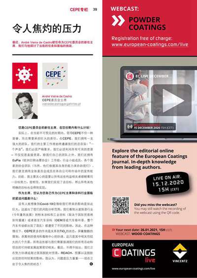 本文系作者@André Vieira de Castro,CEPE委員會(huì)新任主席 授權(quán)中國(guó)涂料網(wǎng)發(fā)表,并經(jīng)中國(guó)涂料網(wǎng)編輯,未經(jīng)允許不得轉(zhuǎn)載,如需轉(zhuǎn)載請(qǐng)聯(lián)系chinacoatingnet@vip.163.com