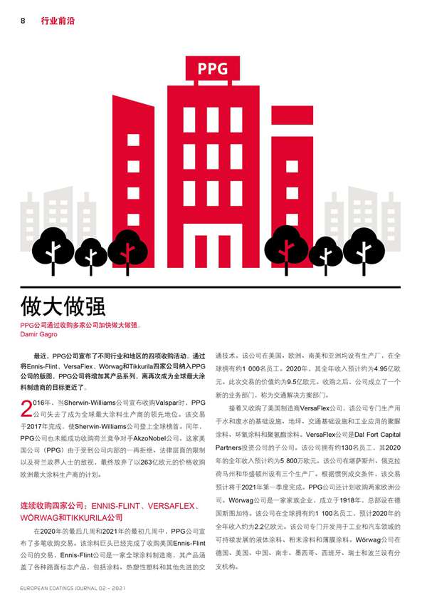 PPG公司通過(guò)收購(gòu)多家公司加快做大做強(qiáng)