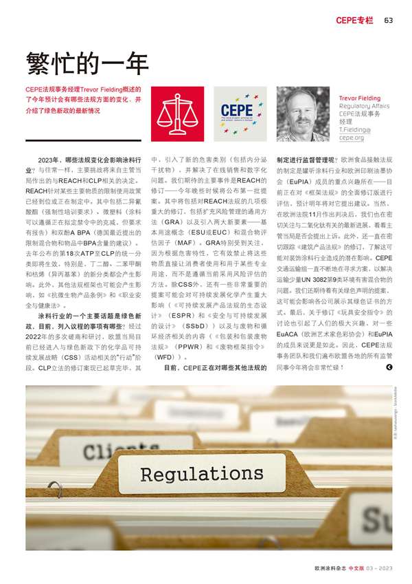 摘要:CEPE法規(guī)事務(wù)經(jīng)理Trevor Fielding