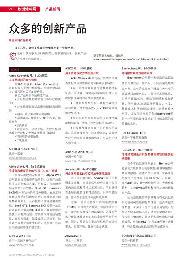 《歐洲涂料雜志》(中文版)2024第1/2期