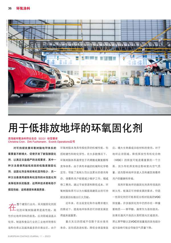 專題:功能涂料 環(huán)氧涂料:用于低排放地坪的固化劑 防涂鴉聚氨酯應用的有機硅助劑 市場報告:性能高,銷量大