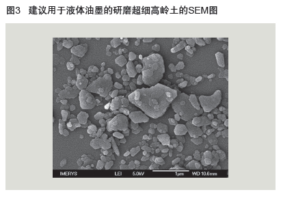 高嶺土(或瓷土)是花崗巖石經過數百萬年的分解,自然 純化而形成的一種鋁硅酸鹽礦物。通過一種"去粗"的控制工藝 (僅少量顆粒粒徑大于10 μm),可將高嶺土進一步加工成所需要 的細度(小于1 μm)。高嶺土具有親水性,在水性油墨中分散良 好,而且通過其他加工方式,還可很好地分散在溶劑型油墨和清 漆中。另一優點在于片狀或層狀結構;通過選擇高嶺土沉淀和加 工方法,還可控制其粒徑和長徑比。礦產業主要按照顆粒的等效 球徑(esd),采用沉降法(基于斯托克斯定律)測量粒徑分布情 況。顆粒的形狀影響所測得的粒徑:在等效球徑一定的情況下, 高嶺土的長徑比越大,片狀高嶺土的尺寸就越大,而其厚度就越 小,一般認為這是高嶺土使用在油墨中的一大優點,因為在印刷 過程中所有高嶺土片狀顆粒都可整齊排布。