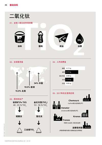 摘要:全球二氧化鈦市場份額中涂料占56%