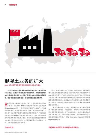 BASF公司在俄羅斯圣彼得堡市設立建筑化學品生產基地