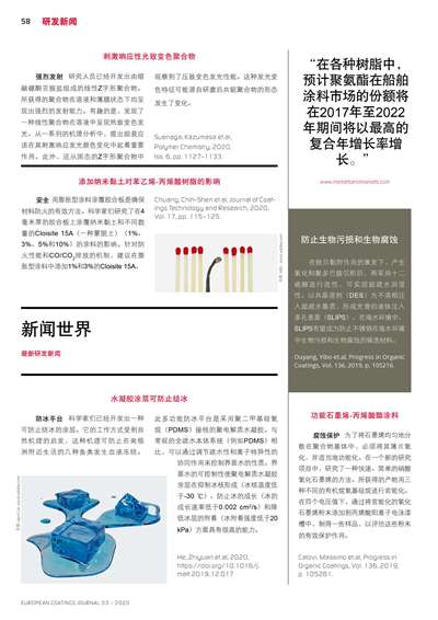 專題:樹脂和助劑 技術(shù)論文:棄用包裝涂料中的聚四氟乙烯組分 鋅片可以作為鋅粉的可持續(xù)發(fā)展替代品 市場報告:涂料助劑市場逐趨穩(wěn)定