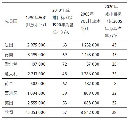在歐盟內(nèi)部,哥德堡協(xié)議關(guān)于特定大氣污染物的國(guó)家排放上限的要求是在《指令2001/81/EC》(即NEC指令)中執(zhí)行的。和哥德堡協(xié)議一樣,該指令意在限制酸化和富養(yǎng)分污染物以及臭氧前 驅(qū)體的排放量,從而改善歐盟環(huán)境和人體健康,降低土壤酸化、 富營(yíng)養(yǎng)化和地面臭氧風(fēng)險(xiǎn)。最初,2010年的目標(biāo)是按照哥德堡協(xié) 議的要求執(zhí)行的。自2013年以來,歐盟委員會(huì)一直致力于對(duì)該指 令進(jìn)行修訂,主要是將哥德堡協(xié)議2020年的目標(biāo)納入指令。作為 新要素,歐盟委員會(huì)也正在計(jì)劃2020年以后進(jìn)一步的減排目標(biāo)。 2013年底的官方修訂草案包括了2020年的目標(biāo)及2030年的目標(biāo)。 通過上述措施,歐盟委員會(huì)希望大大降低空氣污染,并進(jìn)一步接 近歐盟清潔和健康空氣的長(zhǎng)期目標(biāo)。該草案規(guī)定德國(guó)2030年的目 標(biāo)為排放652 000 t,即與2005年相比,明顯減少43%。在5年或10 年時(shí)間內(nèi)是很難實(shí)現(xiàn)這一目標(biāo)。涂料和印刷油墨行業(yè)也會(huì)因此受 到影響。比如,德國(guó)聯(lián)邦環(huán)境署(UBA)對(duì)印刷行業(yè)的NMVOC減 排潛力研究項(xiàng)目就體現(xiàn)了這一點(diǎn)。
