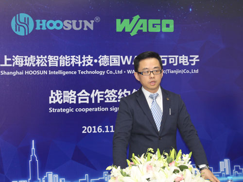 簽約儀式上,上海琥崧智能科技股份有限公司董事長李源林表示,制造業與互聯網融合發展,是全球新一輪科技革命和產業革命的核心特征,也是未來發展趨勢。不斷創新一直是琥崧堅持的戰略與目標,2016年琥崧智能布局全球精細化工市場,選擇與德國WAGO這樣優秀的企業合作,將引進WAGO全球化的智能制造網絡技術,為精細化工企業提升工廠自動化水平、產品質量水平及生產監控物聯網水平,以最新科技為精細化工企業筑就通向柔性、靈活的“未來工廠”之路,助力實現“中國制造2025”規劃目標。