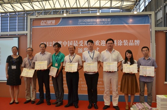 由北京涂博國際展覽有限公司、《中國涂料》雜志社有限公司共同組成的中國涂料品牌評選組委會主辦,信息傳播和涂料消費領域權威媒體中國涂料網、《中國涂料》雜志、涂料博覽網、中國涂料報道、《中國涂料》報紙、新浪地產、搜狐焦點家居等支持的2012年度“中國最受用戶歡迎涂料涂裝品牌”評選活動于“2013中國國際涂料博覽會”(CCS2013上海涂博會)現場揭曉結果。