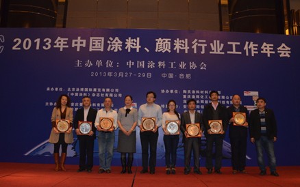 2013年3月28日晚,由北京涂博國際展覽有限公司聯合《中國涂料》雜志社有限公司和《消費日報》社名牌產品宣傳保護中心共同舉辦的“2011中國最受下游用戶歡迎的涂料涂裝品牌”及“2011中國涂料行業十大風云人物”CCTOP10授牌典禮也在此隆重舉行。