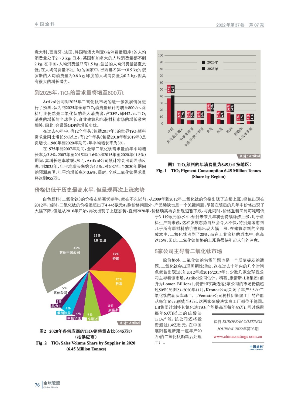 摘要:編者按:在涂料配方中,白色顏料“二氧化鈦”是一種必不可少的組分。因此,業(yè)界密切關(guān)注該領(lǐng)域的發(fā)展也就不足為奇了,預(yù)計對TiO2的需求量將持續(xù)增大,針對該顏料的挑戰(zhàn)也將會不斷增加,如價格、法規(guī)責(zé)任以及對供貨是否充足的擔(dān)憂。