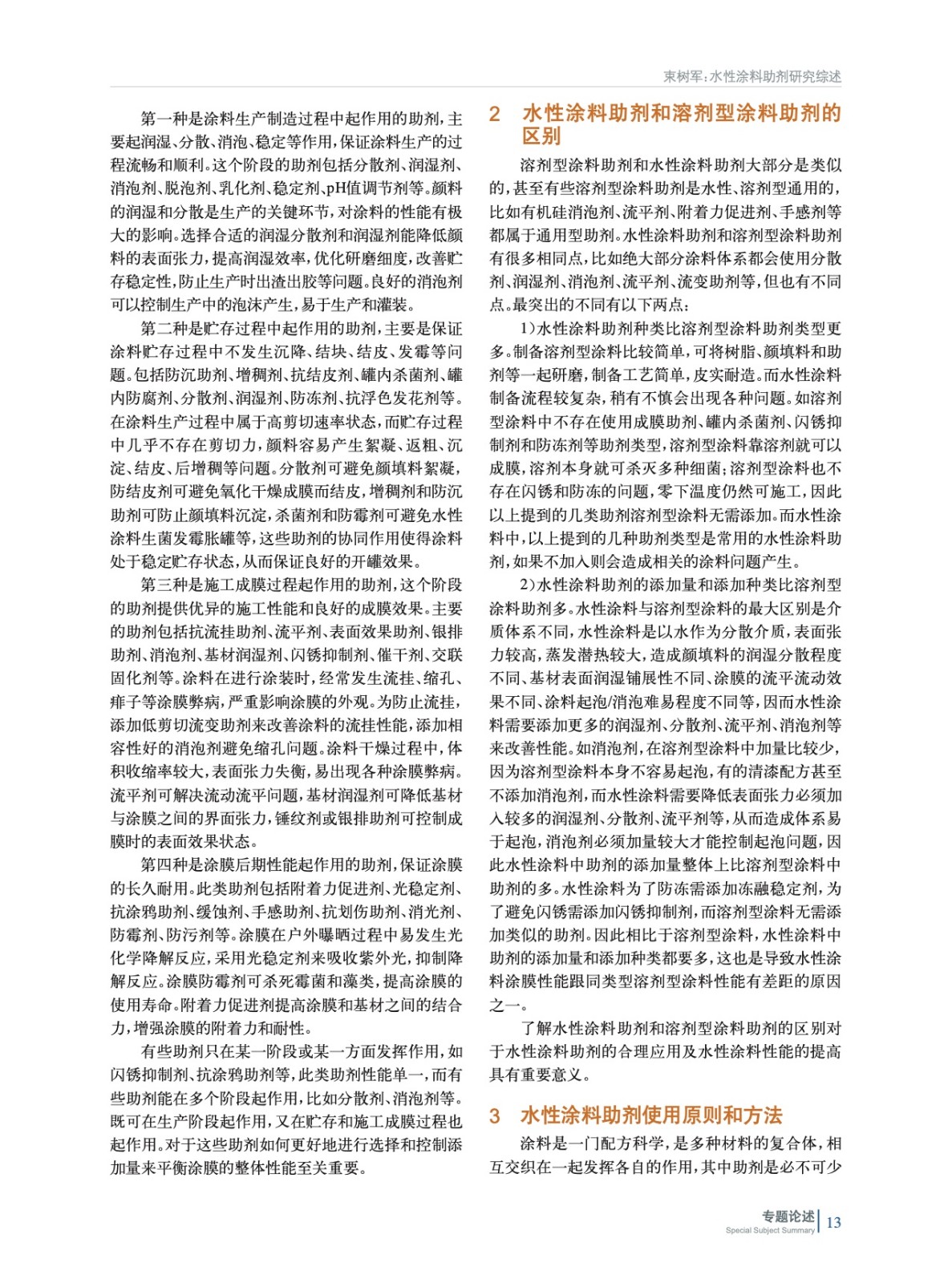 對水性涂料用助劑進行了概括整理和歸類,并在對溶劑型涂料助劑和水性涂料助劑進行比較的基礎上,總結得出助劑使用原則和方法,同時對水性涂料助劑的未來發展方向及存在的挑戰進行展望。