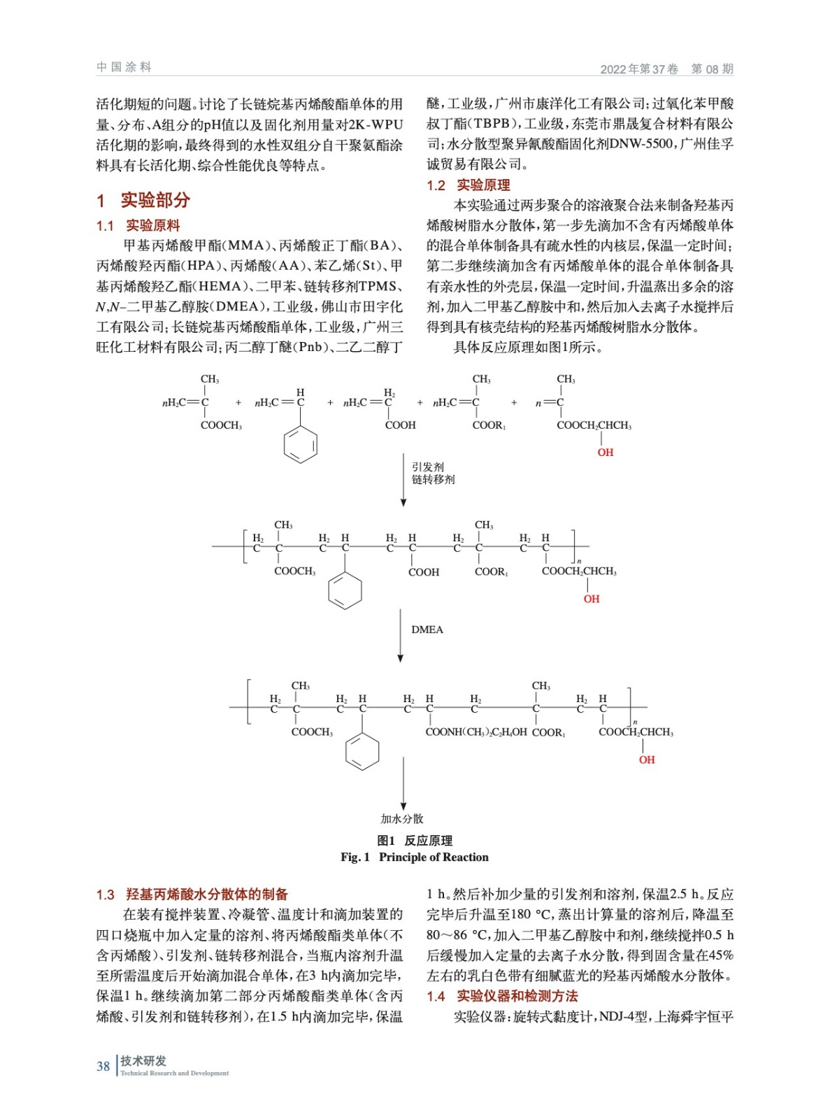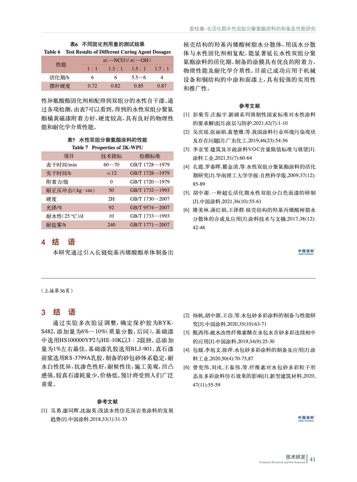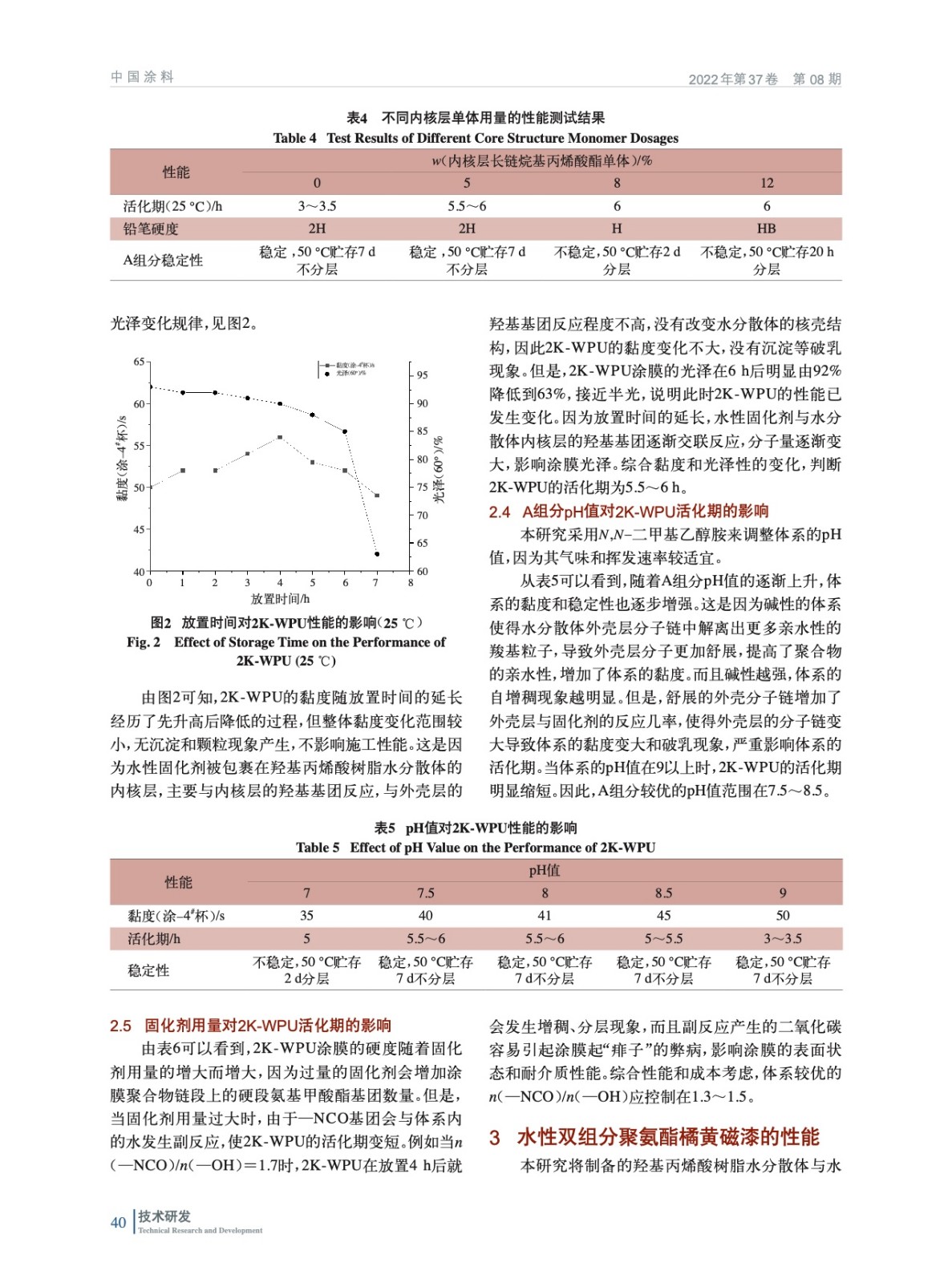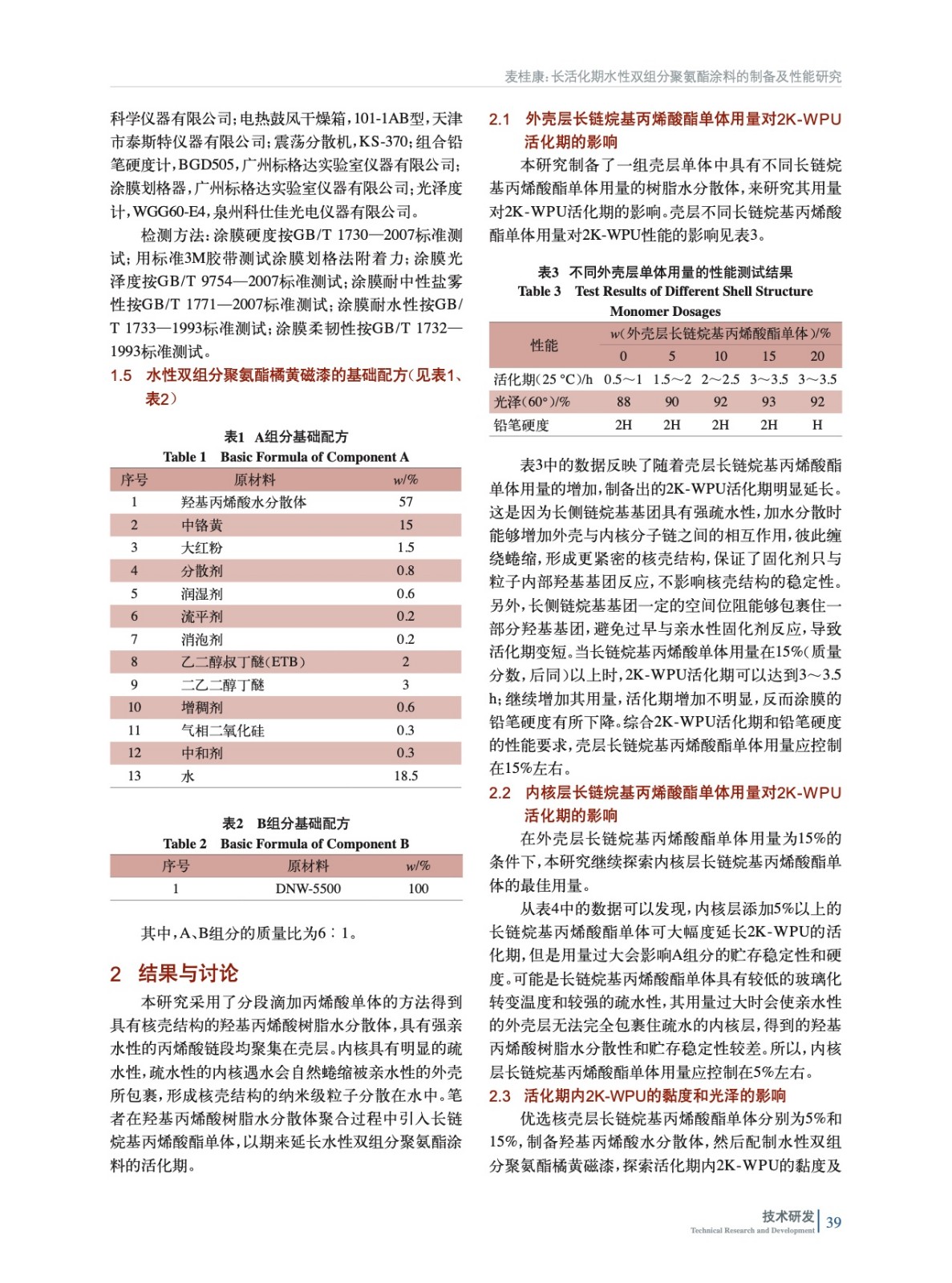 通過引入長鏈烷基丙烯酸酯單體制備出具有核殼結構的羥基丙烯酸樹脂水分散體,采用其與親水改性多異氰酸酯固化劑配制水性雙組分聚氨酯涂料(2K-WPU),對影響水性雙組分涂料活化期問題進行研究,最終得到的水性雙組分自干涂料具有長活化期、綜合性能優良等特點。