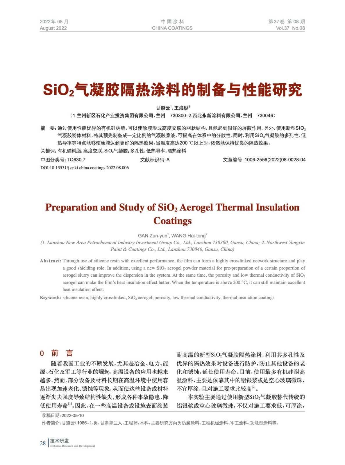 SiO2氣凝膠隔熱涂料的制備與性能研究