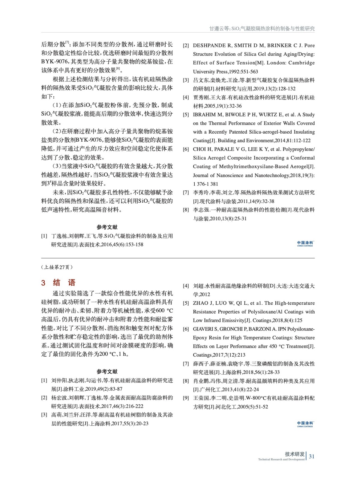 摘要:通過(guò)使用性能優(yōu)異的有機(jī)硅樹脂,可以使涂膜形成高度交聯(lián)的網(wǎng)狀結(jié)構(gòu),且能起到很好的屏蔽作用。另外,使用新型SiO2氣凝膠粉體材料,將其預(yù)先制備成一定比例的氣凝膠漿液,可提高在體系中的分散性。同時(shí),利用SiO2氣凝膠的多孔性、低熱導(dǎo)率等特點(diǎn)能夠使涂膜達(dá)到更好的隔熱效果,當(dāng)溫度高達(dá)200 ℃以上時(shí),依然能保持優(yōu)良的隔熱效果。
