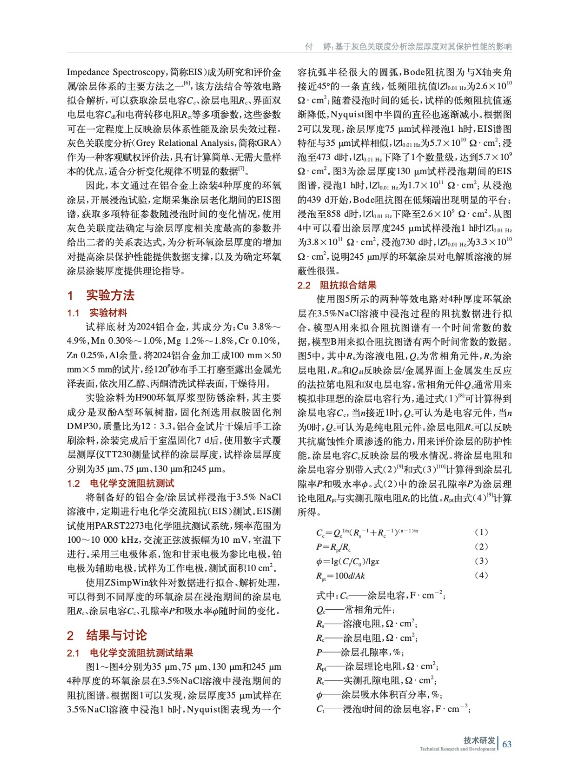 基于灰色關聯度分析涂層厚度對其保護性能的影響