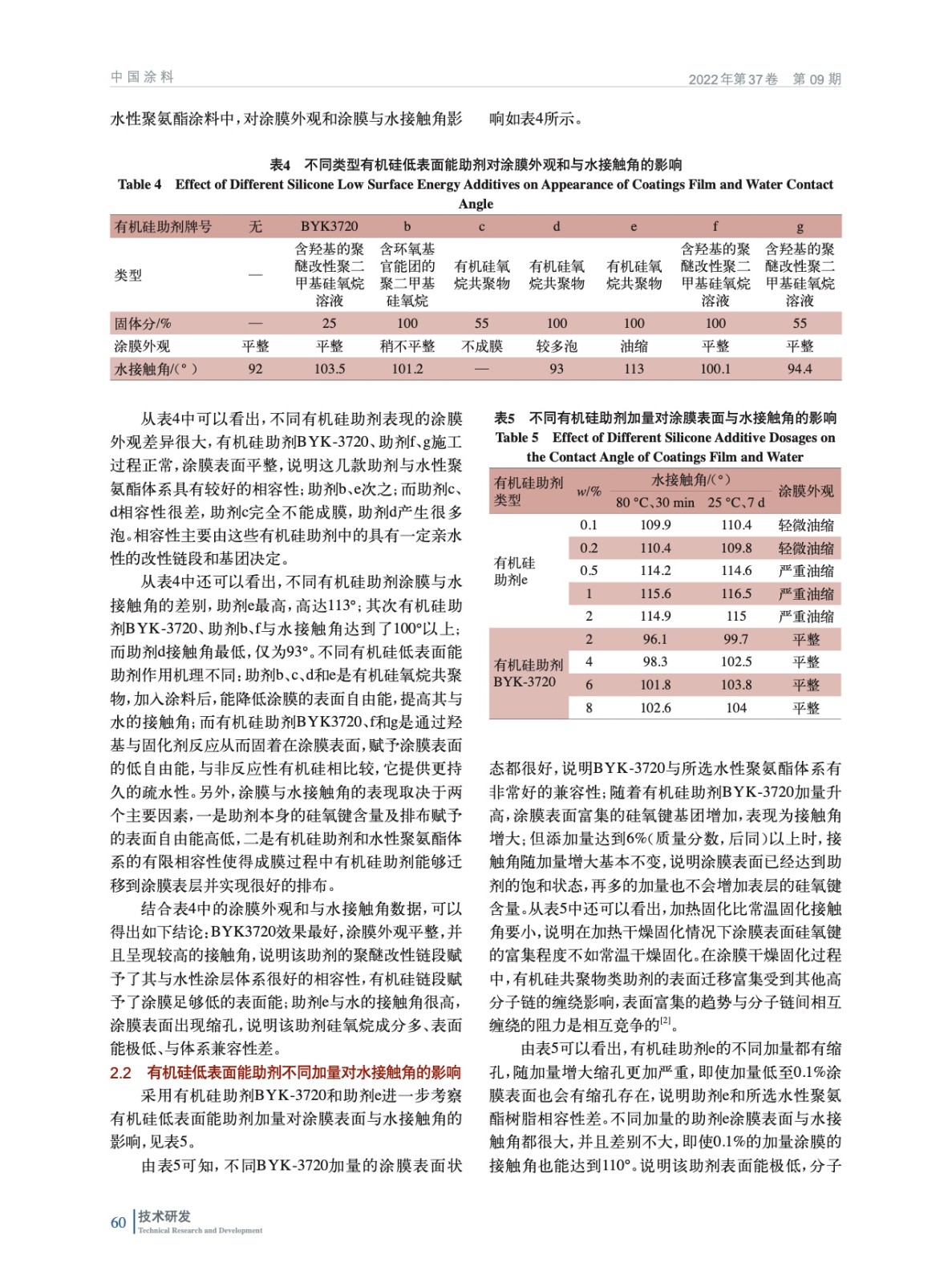 有機硅低表面能助劑對水性聚氨酯涂膜表面與水接觸角的影響