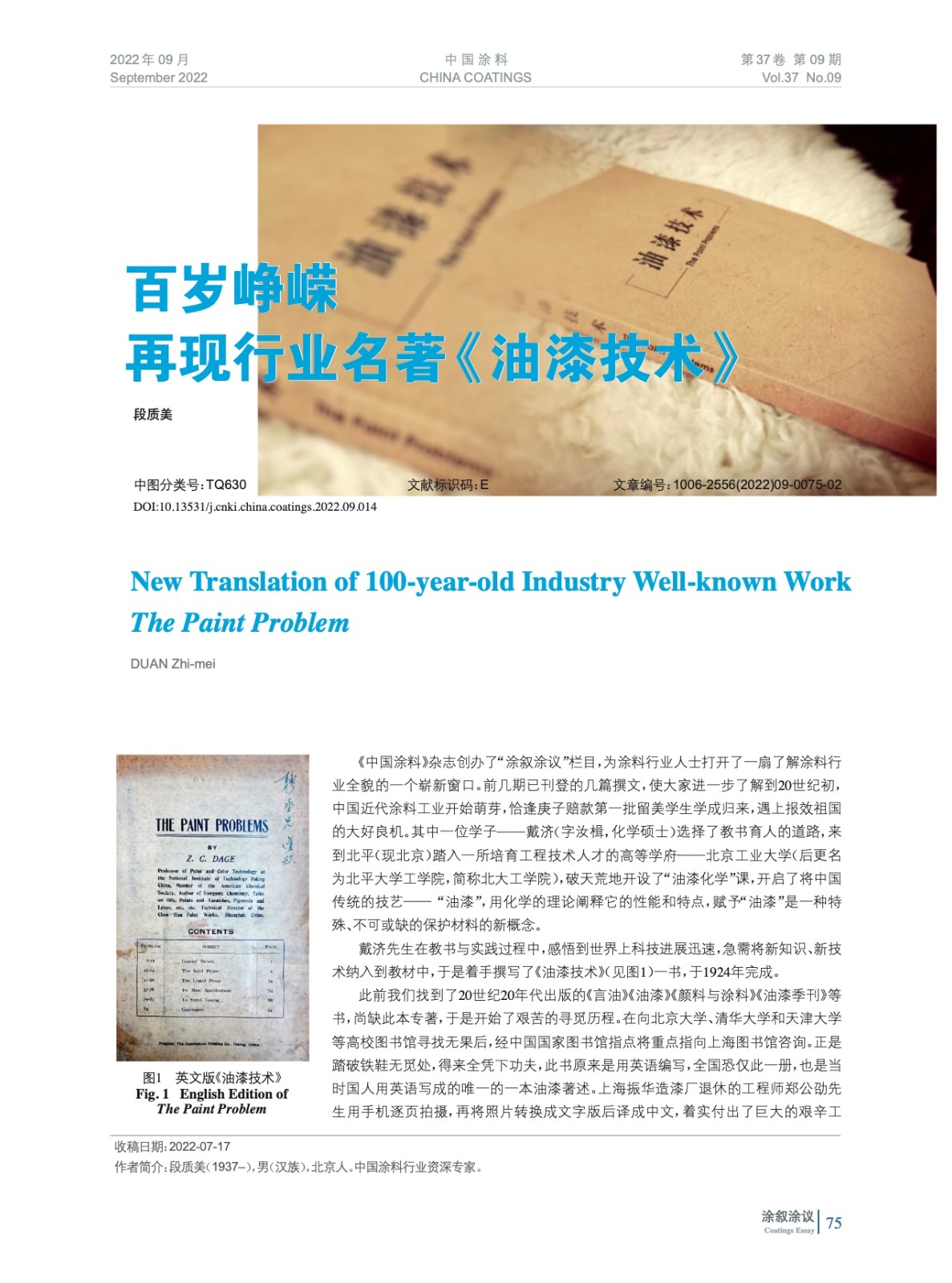 摘要:前幾期已刊登的幾篇撰文,使大家進一步了解到20世紀初,中國近代涂料工業開始萌芽,恰逢庚子賠款第一批留美學生學成歸來,遇上報效祖國的大好良機。其中一位學子——戴濟選擇了教書育人的道路,來到北平(現北京)踏入北京工業大學,破天荒地開設了“油漆化學”課,開啟了將中國傳統的技藝——“油漆”,用化學的理論闡釋它的性能和特點,賦予“油漆”是一種特殊、不可或缺的保護材料的新概念。