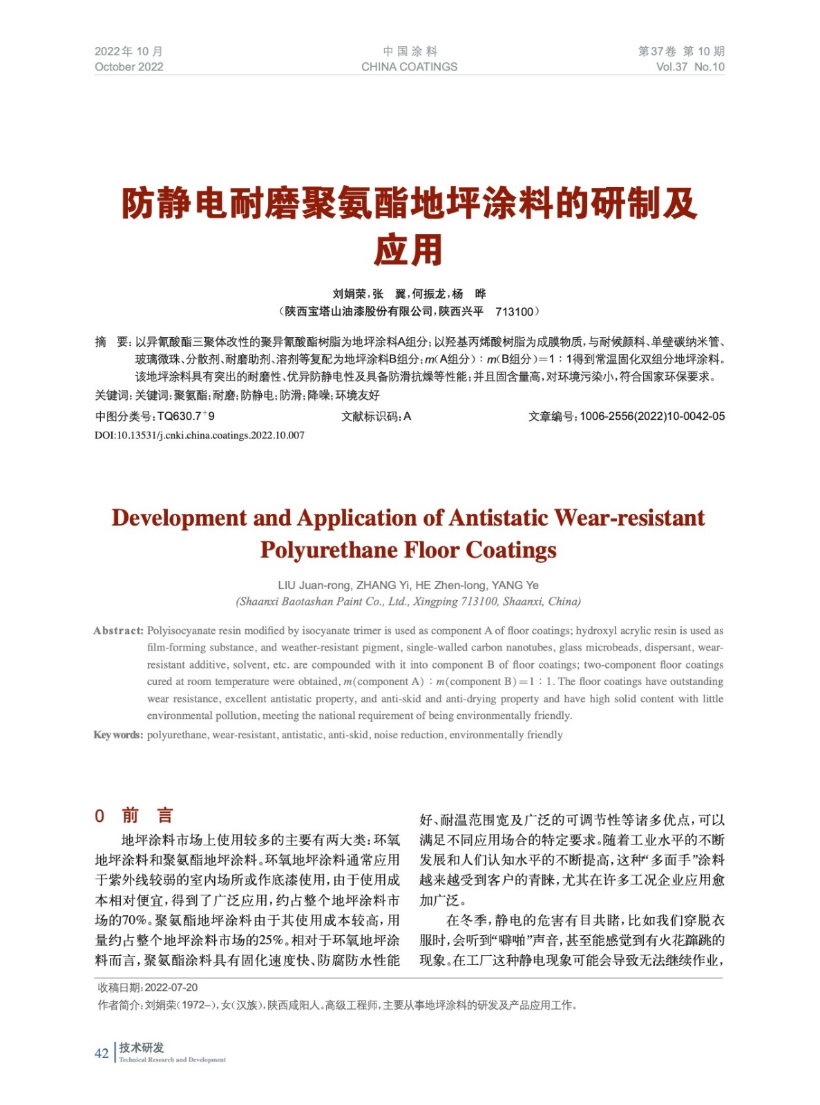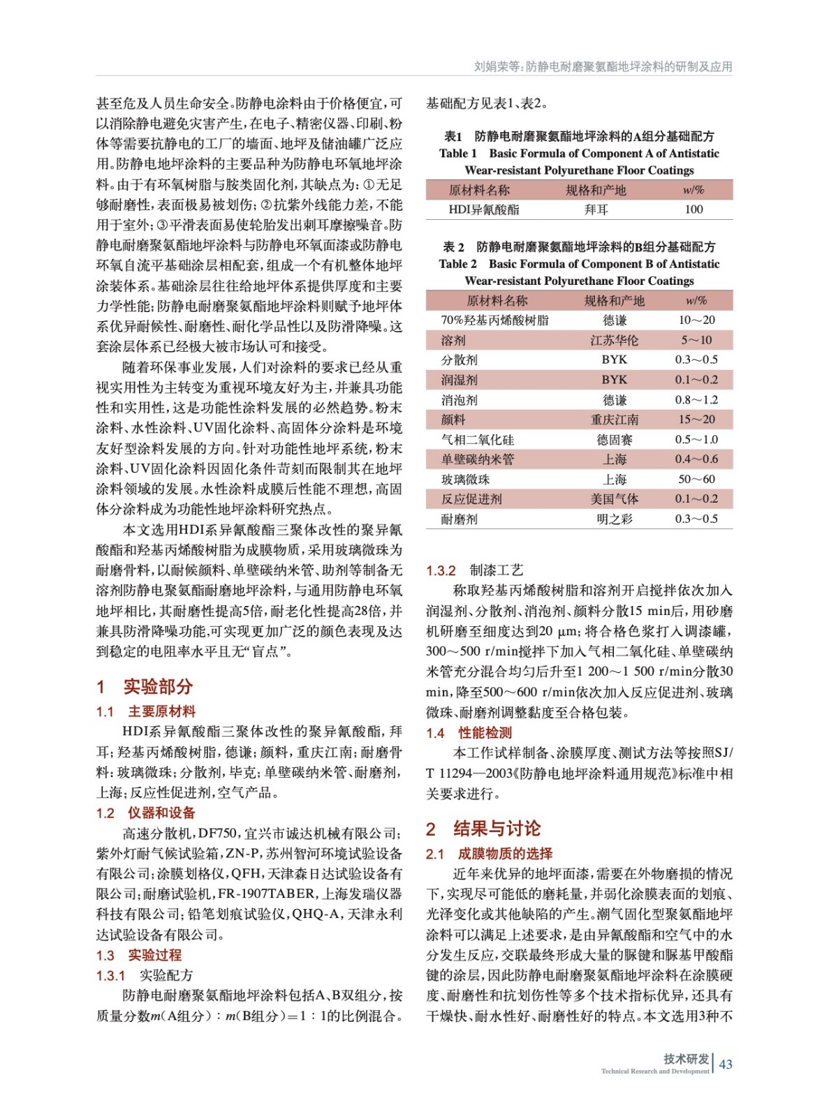 防靜電耐磨聚氨酯地坪涂料的研制及應(yīng)用