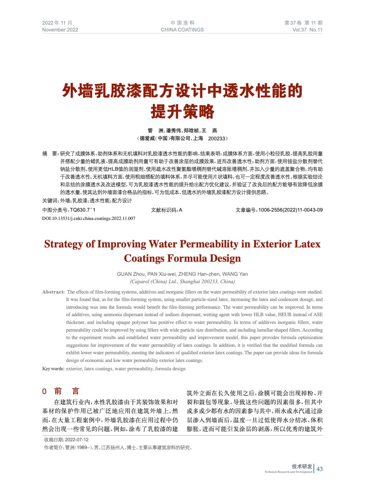 本文系作者@管 洲,潘秀偉,鄭晗禎,王 燕 授權(quán)中國(guó)涂料網(wǎng)發(fā)表,并經(jīng)中國(guó)涂料網(wǎng)編輯,未經(jīng)允許不得轉(zhuǎn)載,如需轉(zhuǎn)載請(qǐng)聯(lián)系chinacoatingnet@vip.163.com