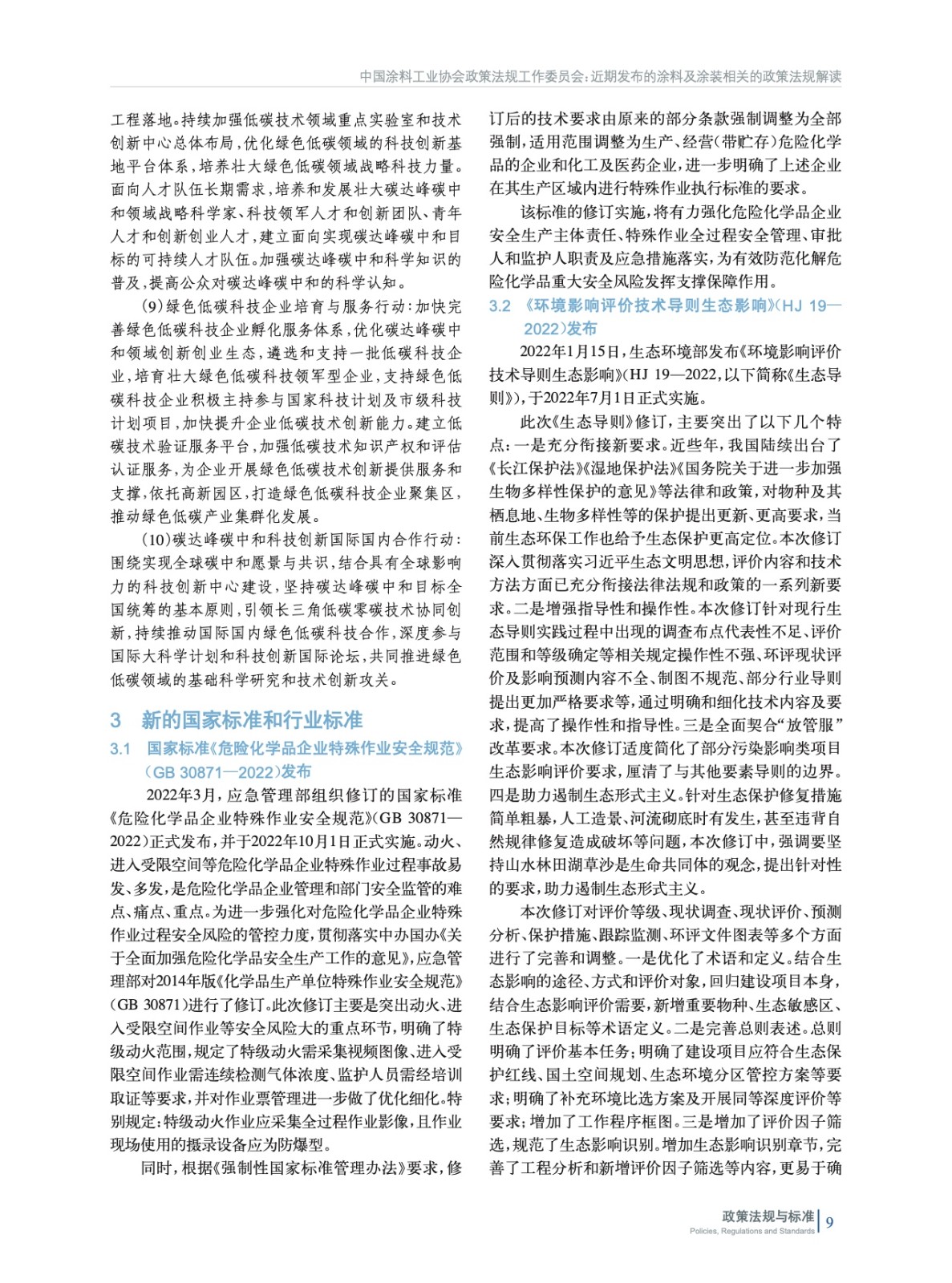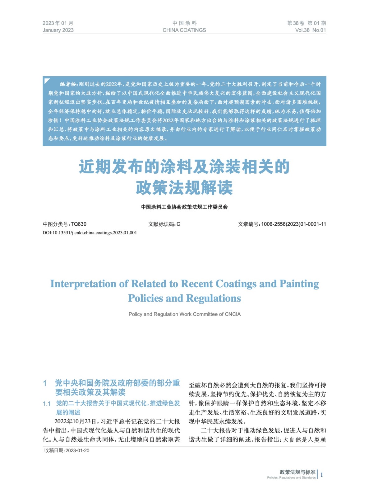 摘要:編者按:剛剛過去的2022年,是黨和國家歷史上極為重要的一年。黨的二十大勝利召開,制定了當(dāng)前和今后一個時期黨和國家的大政方針,描繪了以中國式現(xiàn)代化全面推進(jìn)中華民族偉大復(fù)興的宏偉藍(lán)圖,全面建設(shè)社會主義現(xiàn)代化國家新征程邁出堅實步伐。在百年變局和世紀(jì)疫情相互疊加的復(fù)雜局面下,面對超預(yù)期因素的沖擊,面對諸多困難挑戰(zhàn),全年經(jīng)濟(jì)保持穩(wěn)中向好,就業(yè)總體穩(wěn)定,物價平穩(wěn),國際收支狀況較好。我們能夠取得這樣的成績,殊為不易,值得倍加珍惜!中國涂料工業(yè)協(xié)會政策法規(guī)工作委員會將2022年國家和地方出臺的與涂料和涂裝相關(guān)的政策法規(guī)進(jìn)行了梳理和匯總,將政策中與涂料工業(yè)相關(guān)的內(nèi)容原文摘錄,并由行業(yè)內(nèi)的專家進(jìn)行了解讀,以便于行業(yè)同仁及時掌握政策動態(tài)和要點,更好地推動涂料及涂裝行業(yè)的健康發(fā)展。