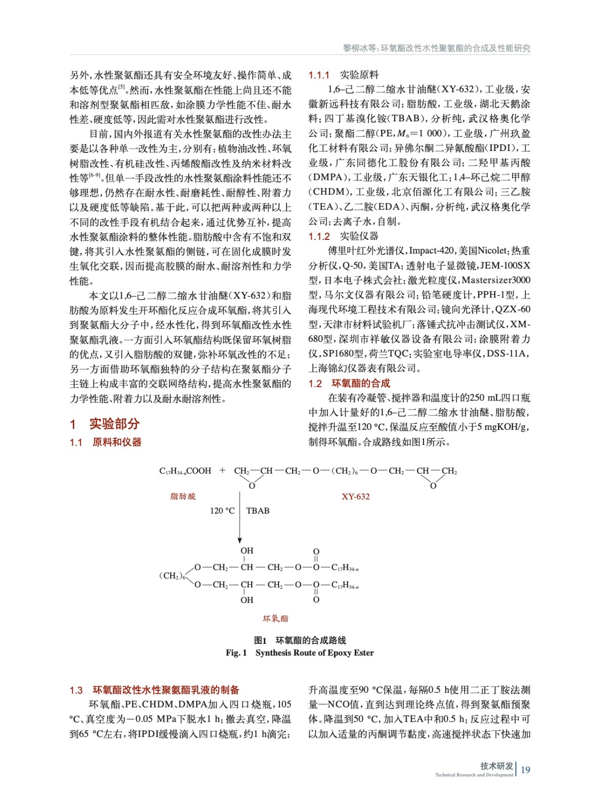 環(huán)氧酯改性水性聚氨酯的合成及性能研究