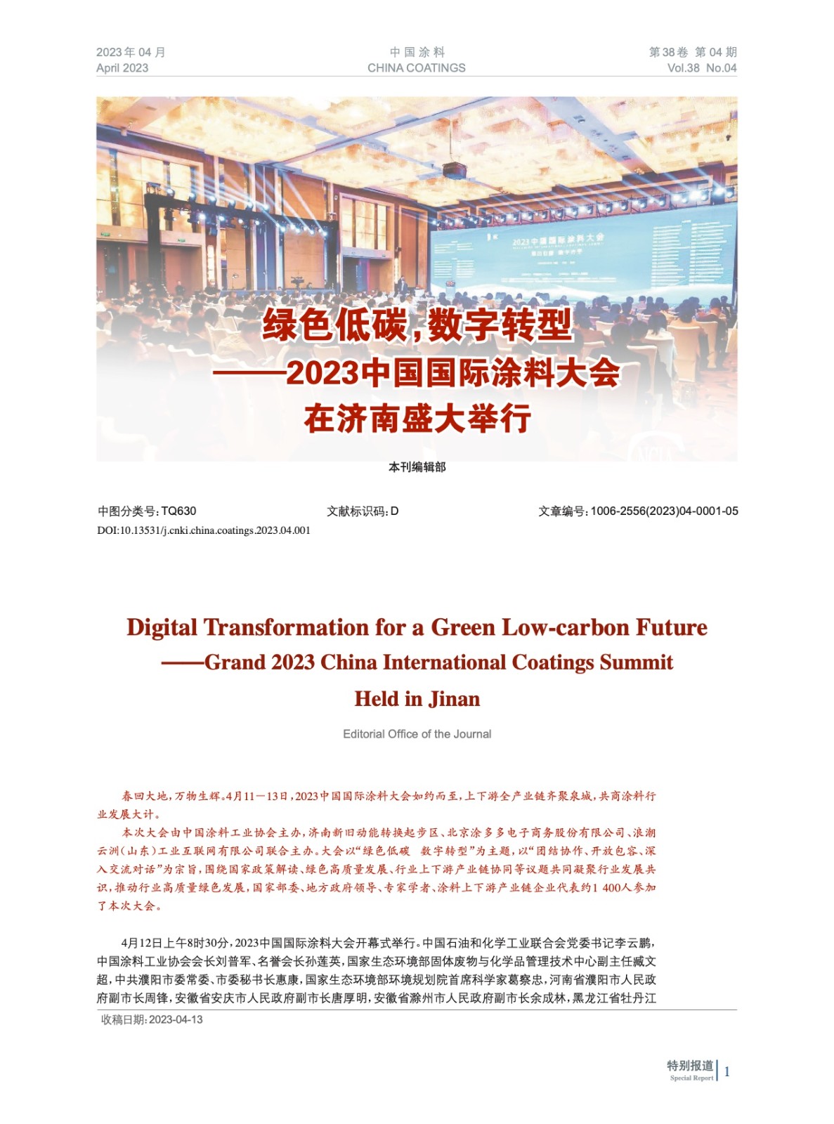 摘要:編者按:春回大地,萬物生輝。4月11-13日,2023中國國際涂料大會如約而至,上下游全產(chǎn)業(yè)鏈齊聚泉城,共商涂料行業(yè)發(fā)展大計。大會以“綠色低碳 數(shù)字轉(zhuǎn)型”為主題,以“團(tuán)結(jié)協(xié)作、開放包容、深入交流對話”為宗旨,圍繞國家政策解讀、綠色高質(zhì)量發(fā)展、行業(yè)上下游產(chǎn)業(yè)鏈協(xié)同等議題共同凝聚行業(yè)發(fā)展共識,推動行業(yè)高質(zhì)量綠色發(fā)展,國家部委、地方政府領(lǐng)導(dǎo)、專家學(xué)者、涂料上下游產(chǎn)業(yè)鏈企業(yè)代表約1 400人參加了本次大會。