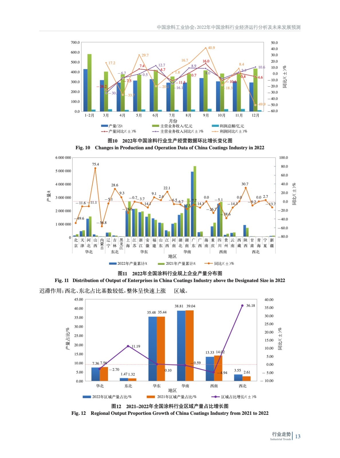分析了2022年中國經濟發展宏觀環境,概括介紹了涂料行業重點下游行業經濟運行情況,重點分析了中國涂料行業經濟運行情況和特征,并對上游鈦白粉、氧化鐵和丙烯酸乳膠領域發展情況進行了概述。最后對中國涂料行業發展趨勢進行了分析和預測。