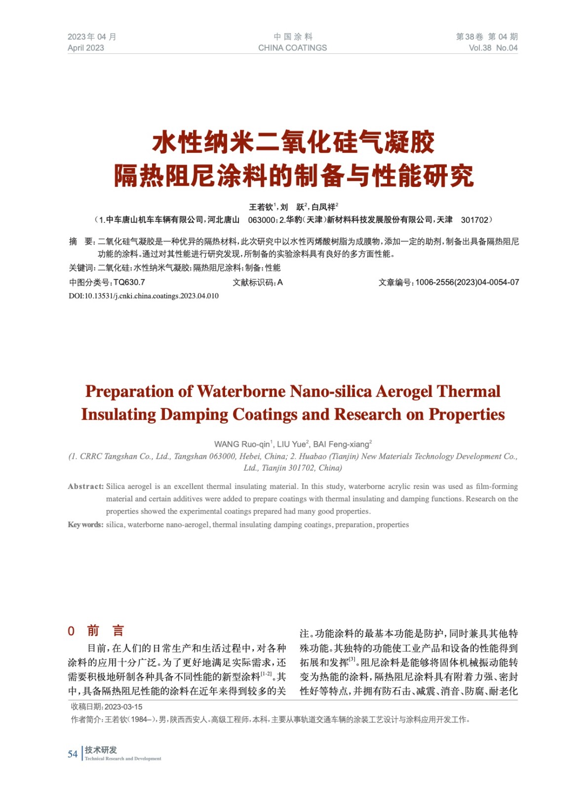 本文系作者@王若欽,劉 躍,白鳳祥 授權中國涂料網發(fā)表,并經中國涂料網編輯,未經允許不得轉載,如需轉載請聯系chinacoatingnet@vip.163.com