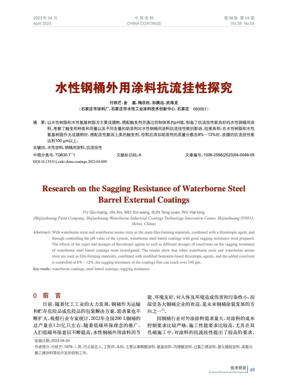 本文系作者@付秋芒,金 鑫,梅欣旺,孫騰遠,武海龍 授權中國涂料網發表,并經中國涂料網編輯,未經允許不得轉載,如需轉載請聯系chinacoatingnet@vip.163.com