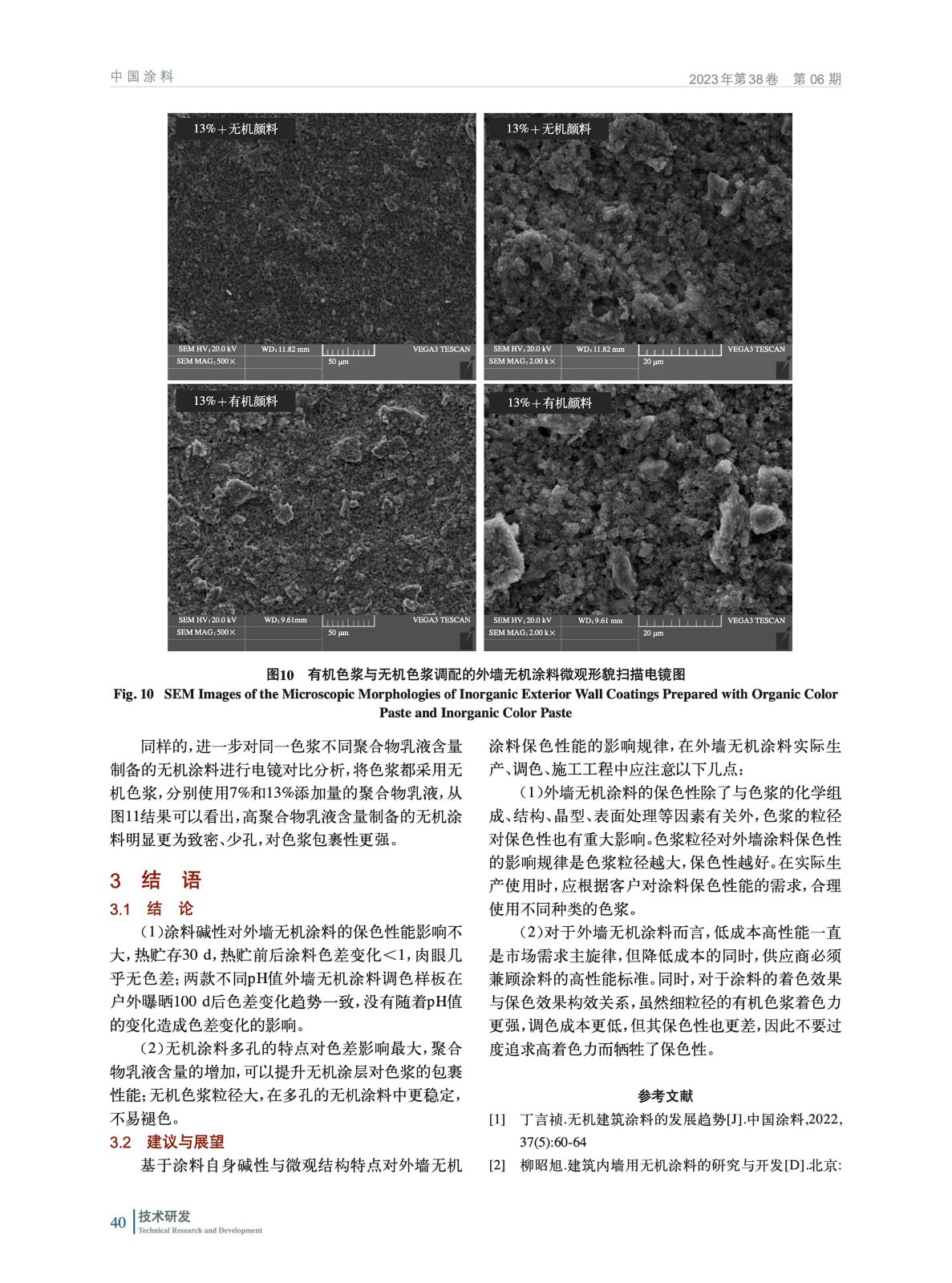 摘要:通過研究涂料堿性與微觀結構對外墻無機涂料保色性能的影響規律作了系統評價。采用SEM、水接觸角和分光色差儀對外墻無機涂料的保色性能進行研究。結果表明:涂料pH值對外墻無機涂料的長期耐候性影響不大,熱貯存30 d,熱貯前后涂料色差變化<1,肉眼幾乎無色差;兩款不同pH值外墻無機涂料調色樣板在戶外曝曬100 d后色差變化趨勢一致,沒有隨著pH值的變化造成色差變化的影響;無機涂料多孔的特點對色差影響最大,乳液含量的增加,可以提升無機涂層對色漿的包裹性能;無機色漿粒徑大,在多孔的無機涂料中更穩定,不易褪色。