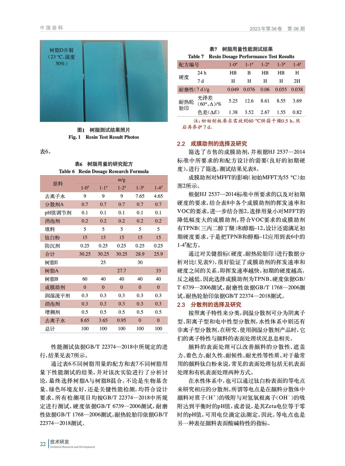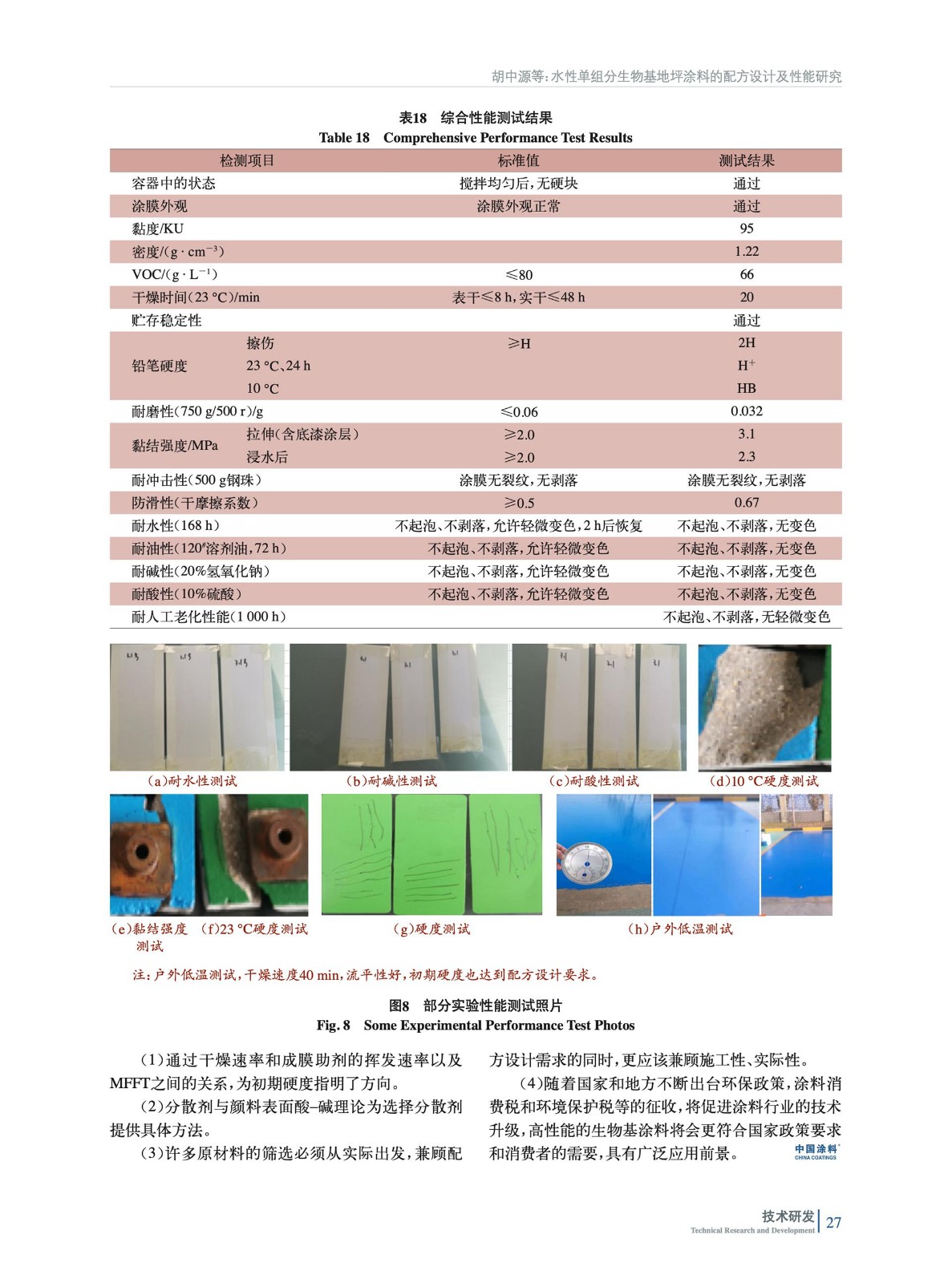 制備了一種具有低VOC、初期高硬度、全天候的功能性單組分水性涂料,其可滿足HJ 2537—2014、GB/T 22374—2018標準要求。研究了影響涂膜耐水性、硬度、流平性、全天候等因素。