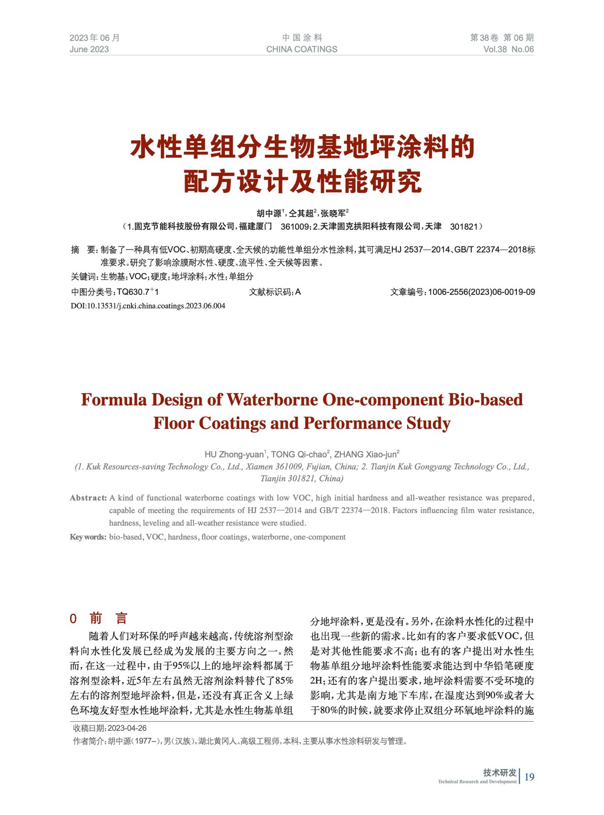 水性單組分生物基地坪涂料的配方設計及性能研究