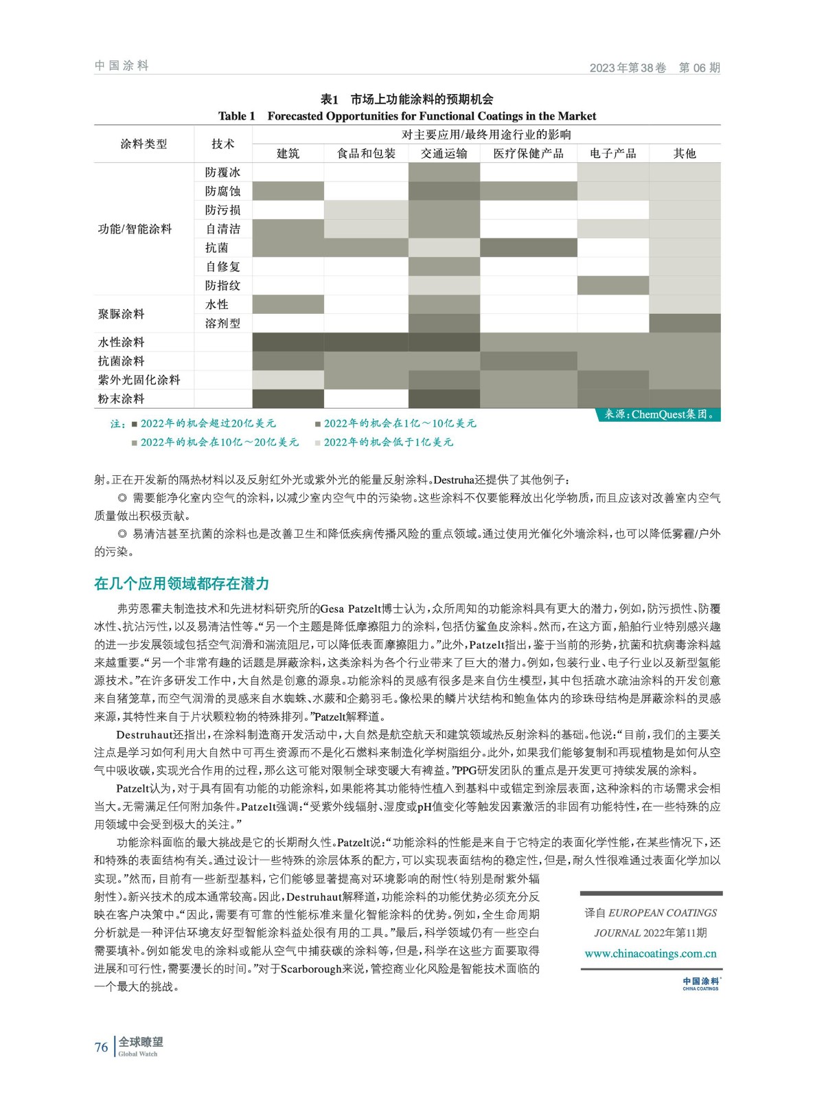 多年來,功能涂料一直是涂料發展中讓人振奮的領域。當前對功能涂料或智能涂料的需求量很大,這有助于促進向可持續發展的經濟模式的過渡。ChemQuest集團根據預測,將以下應用領域作為領先增值領域:用于辦公家具的高檔涂料、用于IT行業的涂料、用于照明設備的某些涂料領域以及高反射材料。