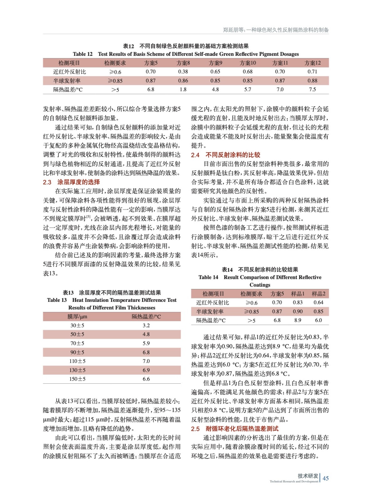 論述了一種綠色耐久性反射隔熱涂料的制備,通過對樹脂基體種類、比例的篩選,自制綠色反射顏料添加量的選擇,以及涂層厚度的比較,選出了耐久性優異且具有反射隔熱降溫效果的最佳方案。