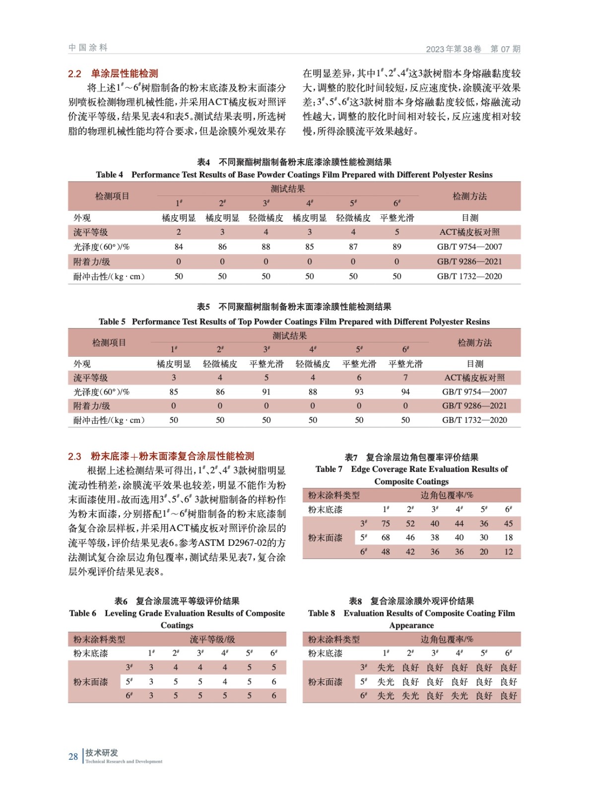 摘要:通過對比研究聚酯樹脂的黏度以及邊角覆蓋助劑對涂膜流平性和邊角包覆效果的影響,并通過調整粉末涂料膠化時間,制備出一種兩涂體系粉末涂料。結果表明,采用高黏度樹脂制備粉末底漆搭配采用低黏度樹脂制備的粉末面漆,并將粉末底漆和粉末面漆分別調整到合適的膠化時間,達到相容性的平衡,所得復合涂層涂膜邊角包覆性好,同時具備優異的裝飾性和保護性。