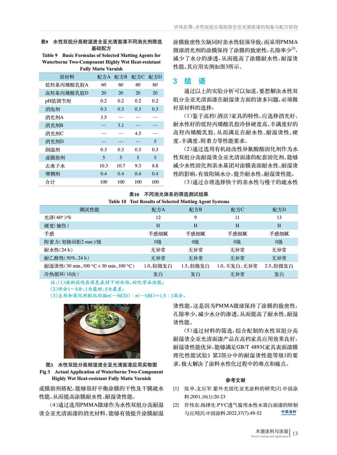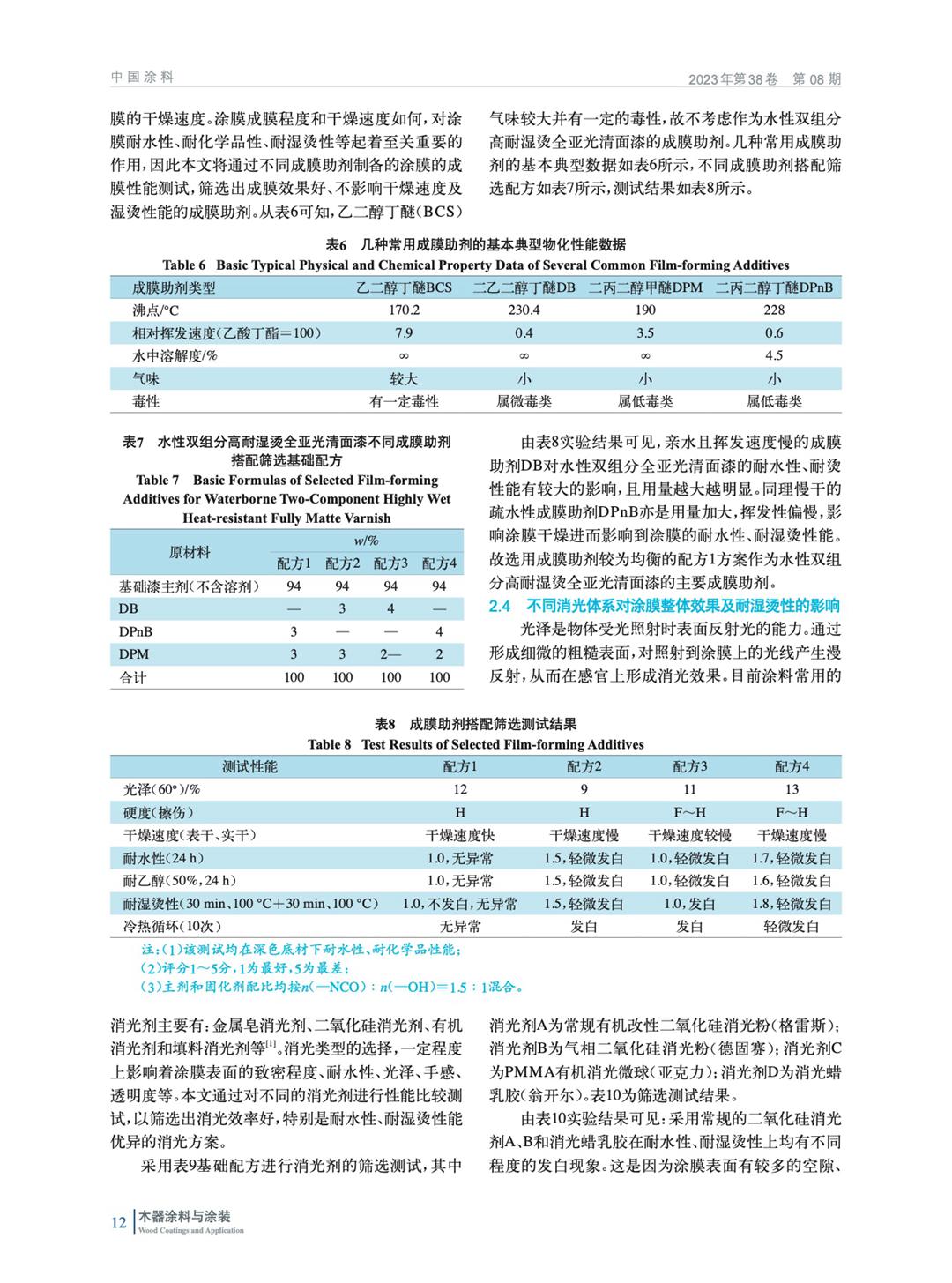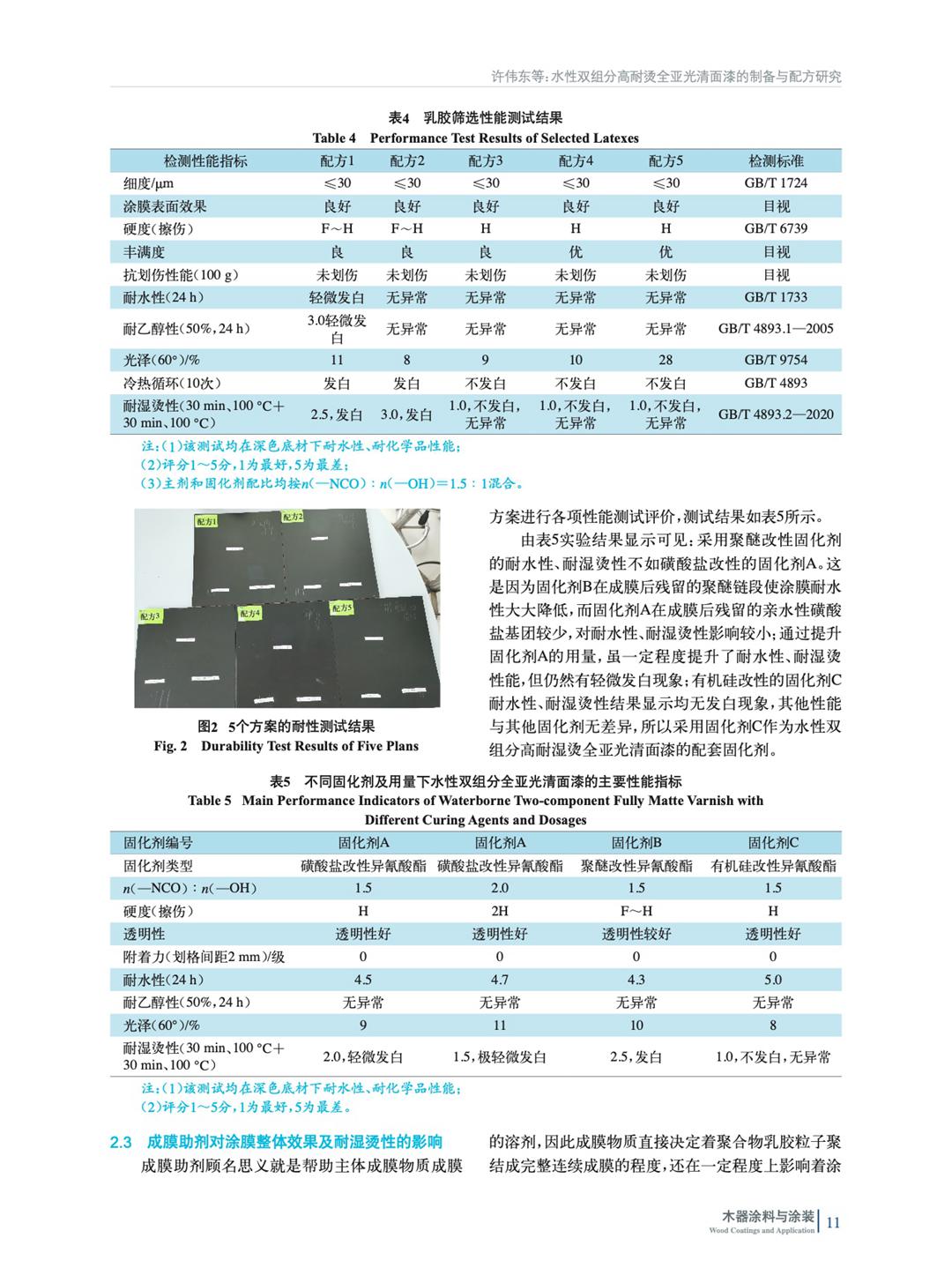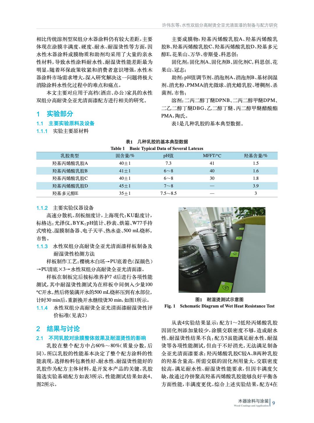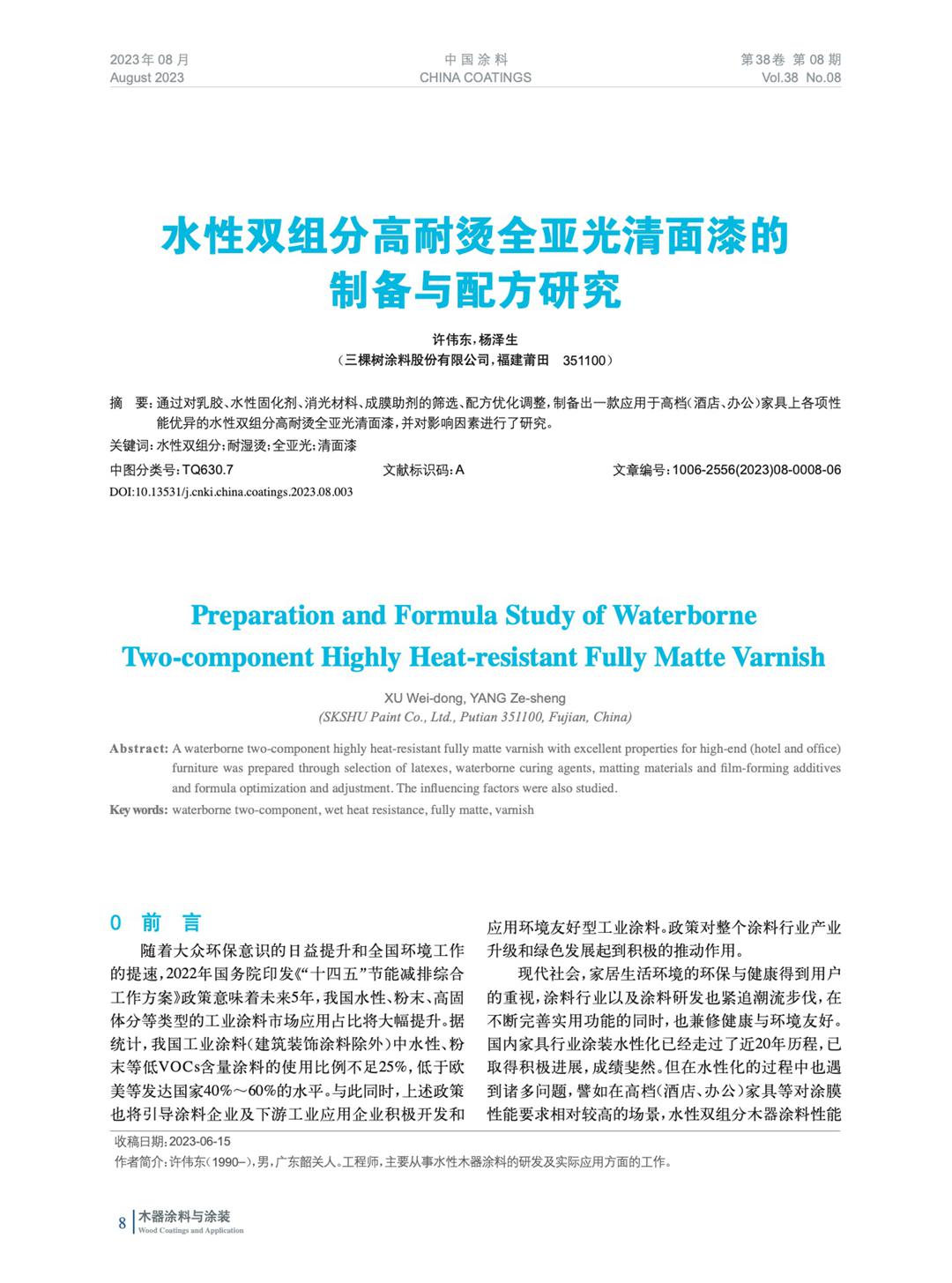 水性雙組分高耐燙全亞光清面漆的制備與配方研究