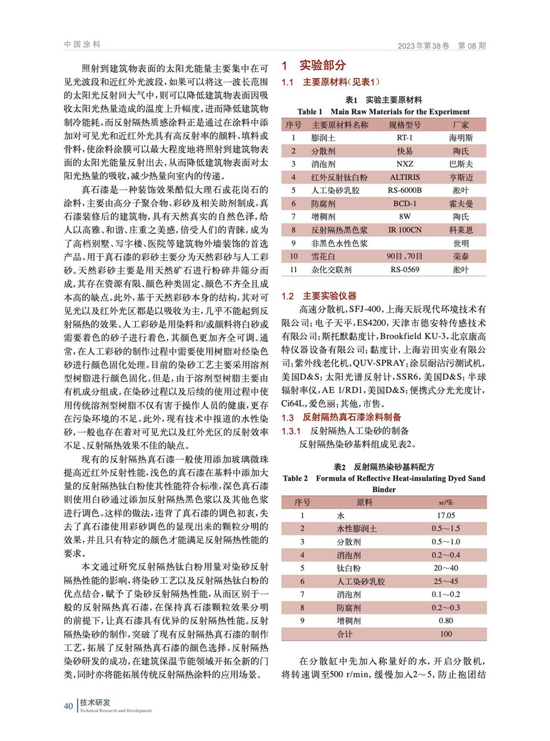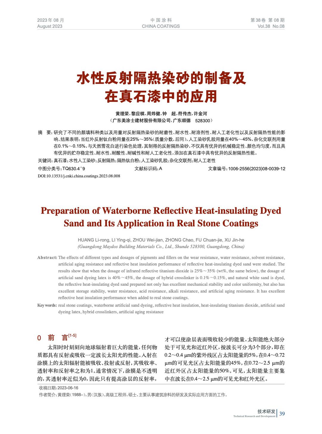 水性反射隔熱染砂的制備及在真石漆中的應用