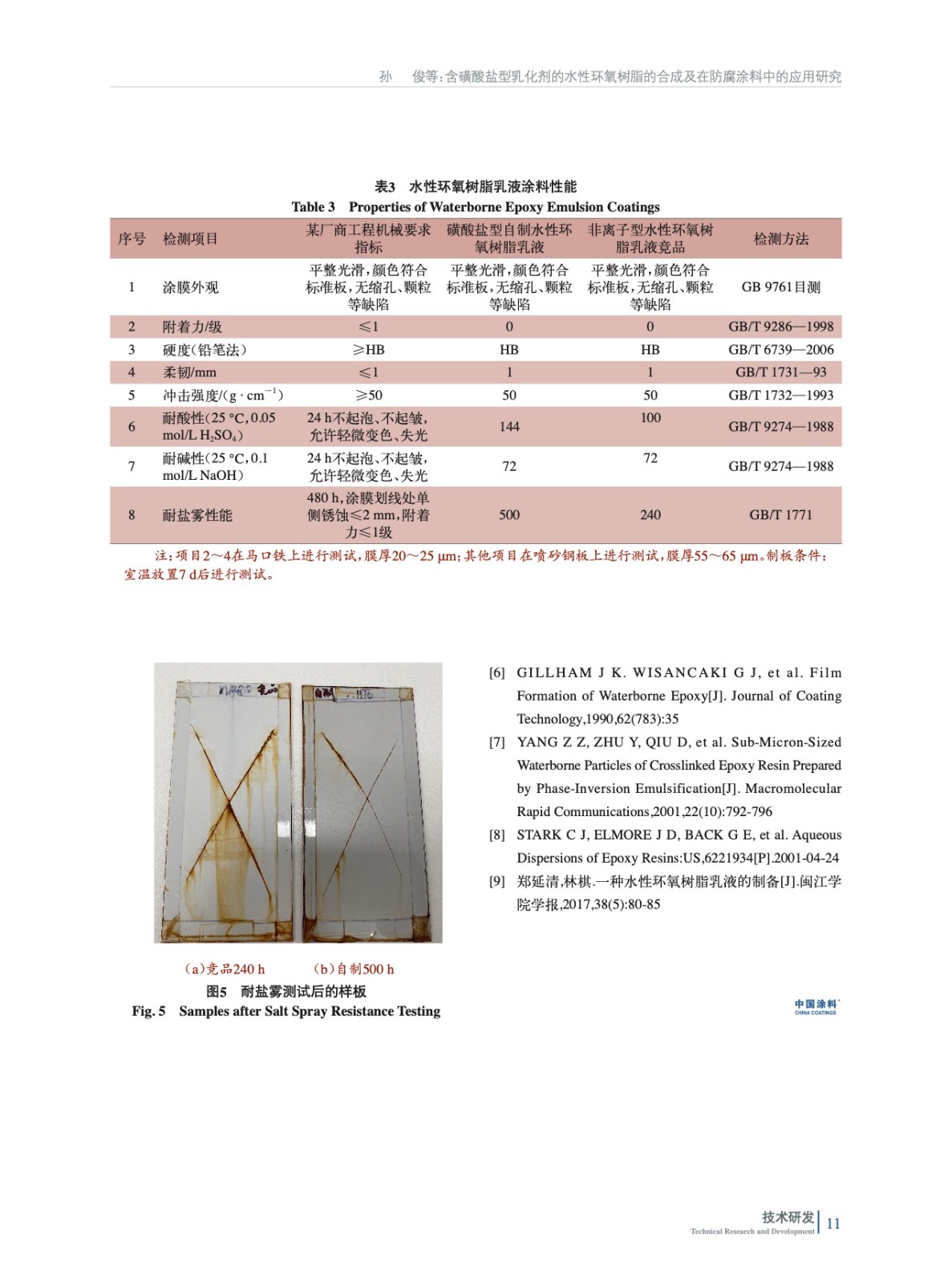 含磺酸鹽型乳化劑的水性環氧樹脂的合成及在防腐涂料中的應用研究
