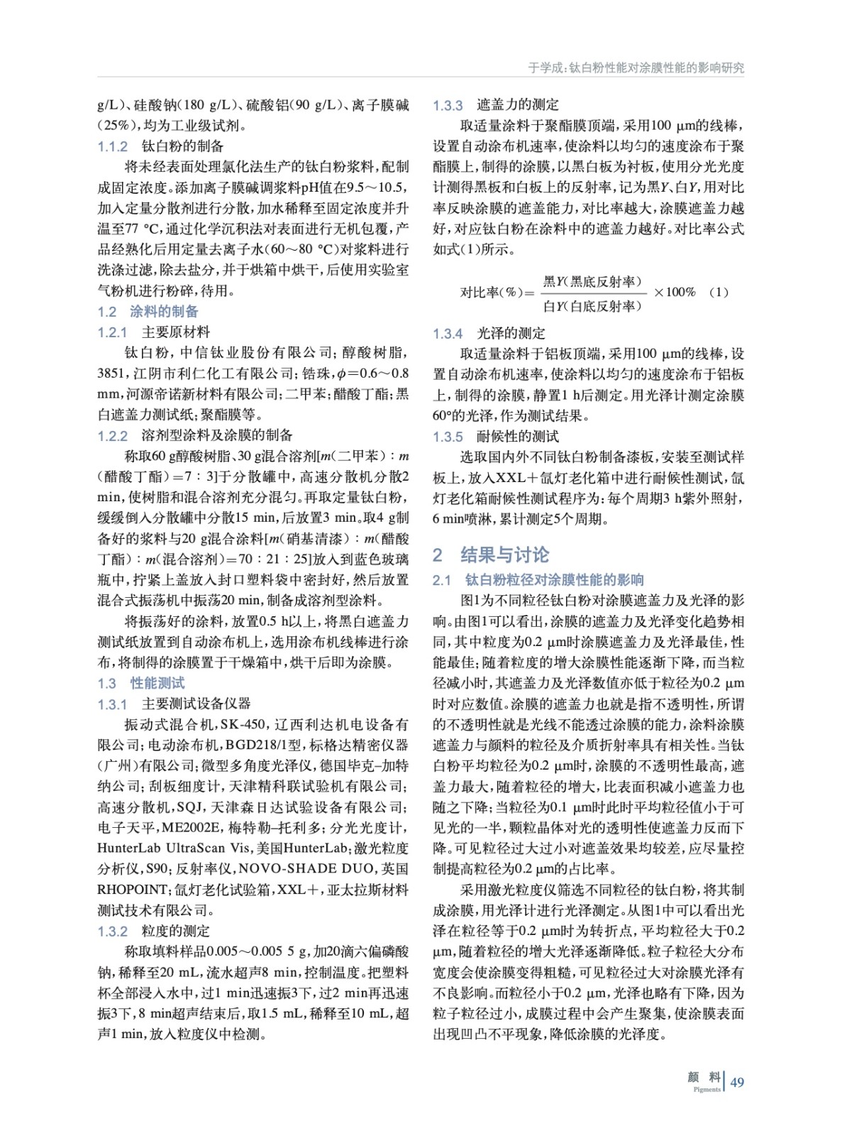 鈦白粉性能對涂膜性能的影響研究