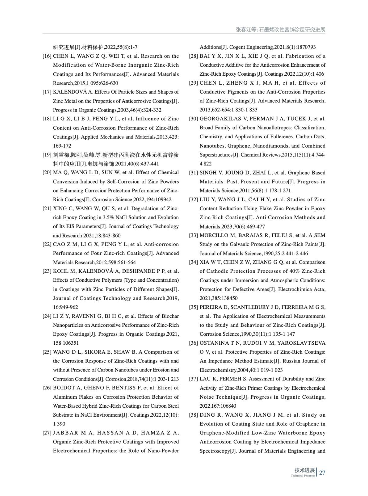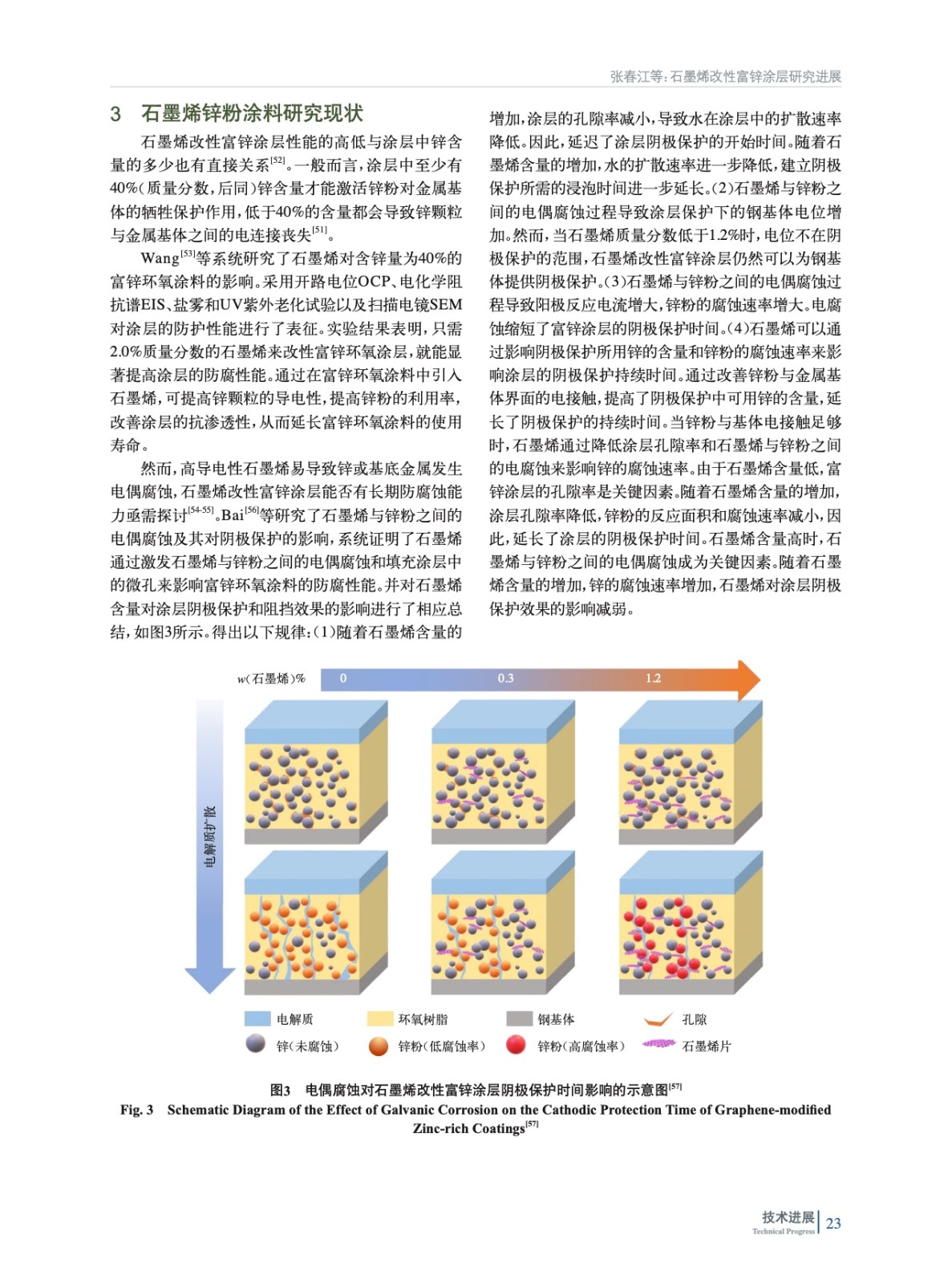 綜述了近年來石墨烯改性富鋅涂層國內外的研究進展,簡要討論了富鋅涂層及石墨烯改性富鋅涂層的基本防腐蝕機理、性能評價、面臨的挑戰和未來的研究方向。