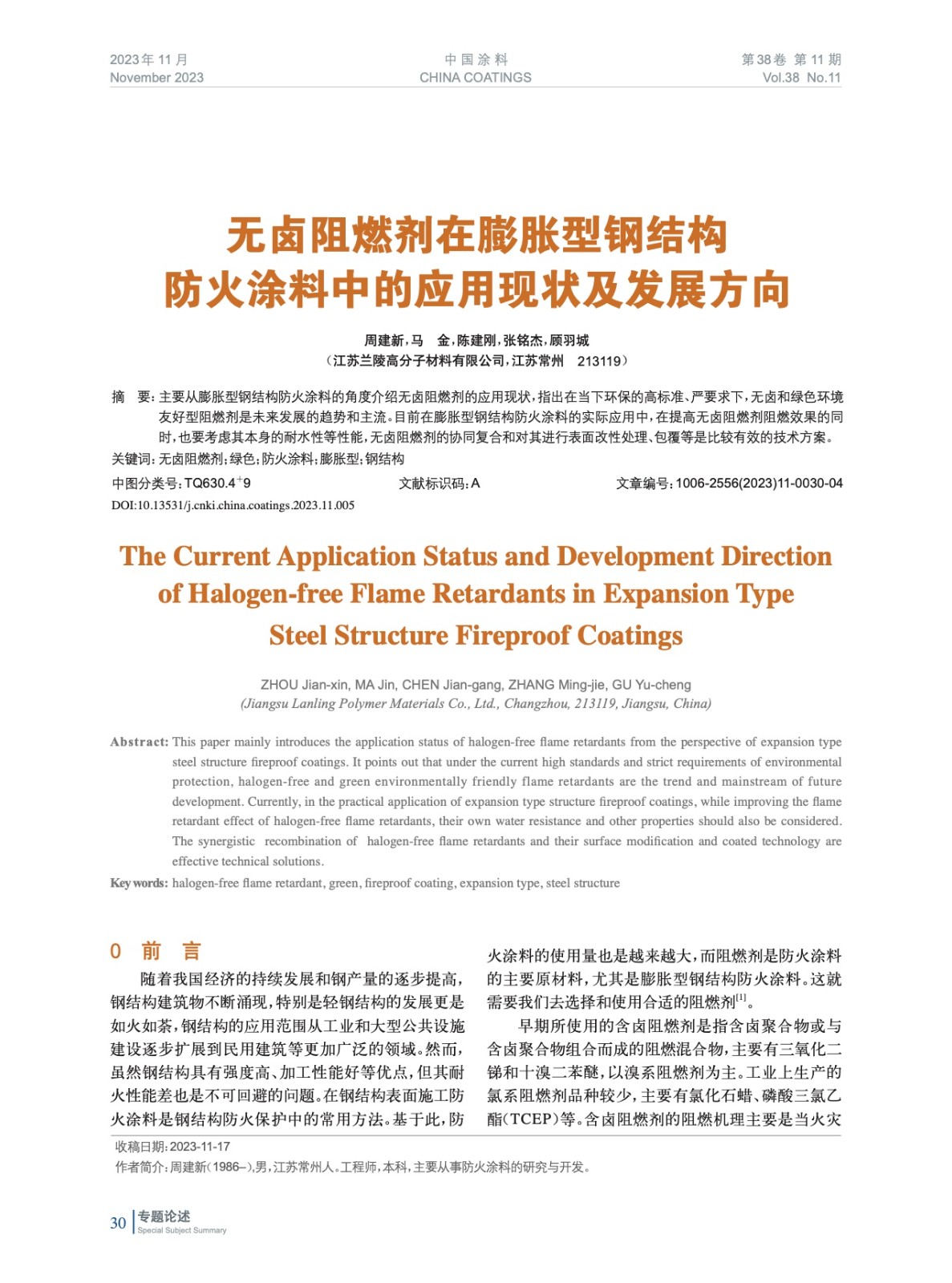 本文系作者@周建新,馬 金,陳建剛,張銘杰,顧羽城 授權中國涂料網發表,并經中國涂料網編輯,未經允許不得轉載,如需轉載請聯系chinacoatingnet@vip.163.com