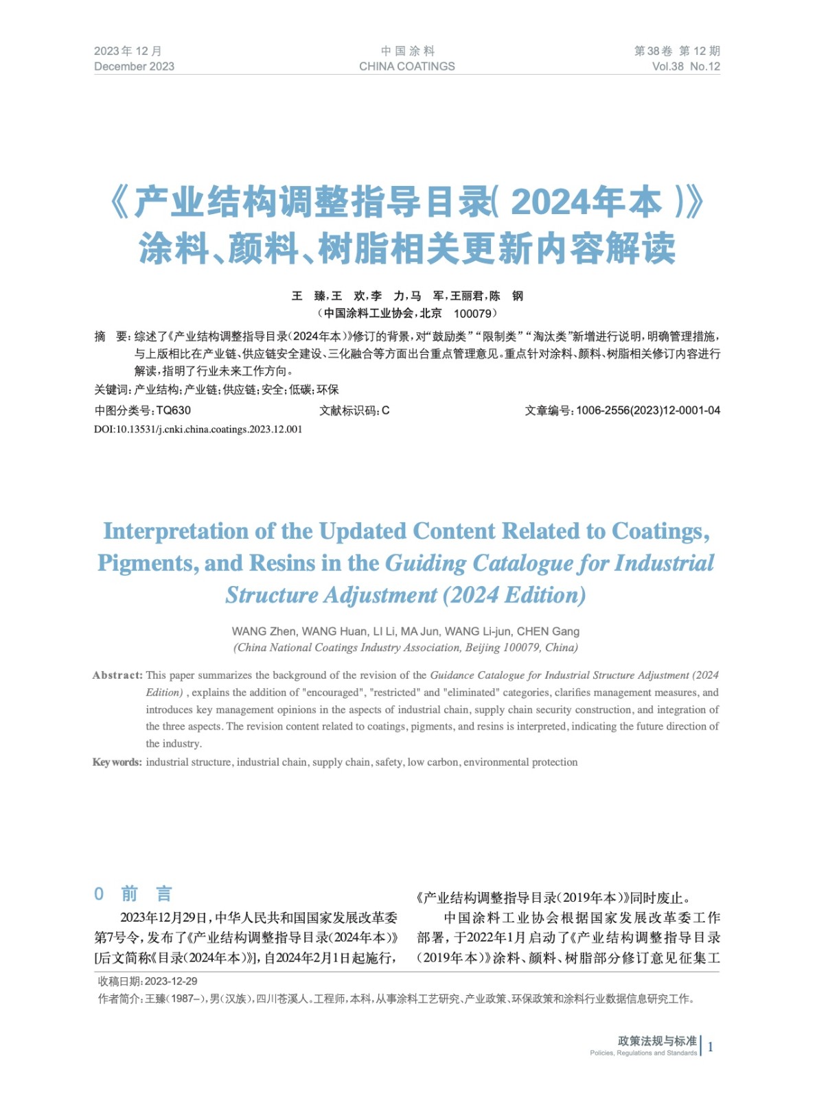 摘要:綜述了《產業結構調整指導目錄(2024年本)》修訂的背景,對“鼓勵類”“限制類”“淘汰類”新增進行說明,明確管理措施,與上版相比在產業鏈、供應鏈安全建設、三化融合等方面出臺重點管理意見。重點針對涂料、顏料、樹脂相關修訂內容進行解讀,指明了行業未來工作方向。