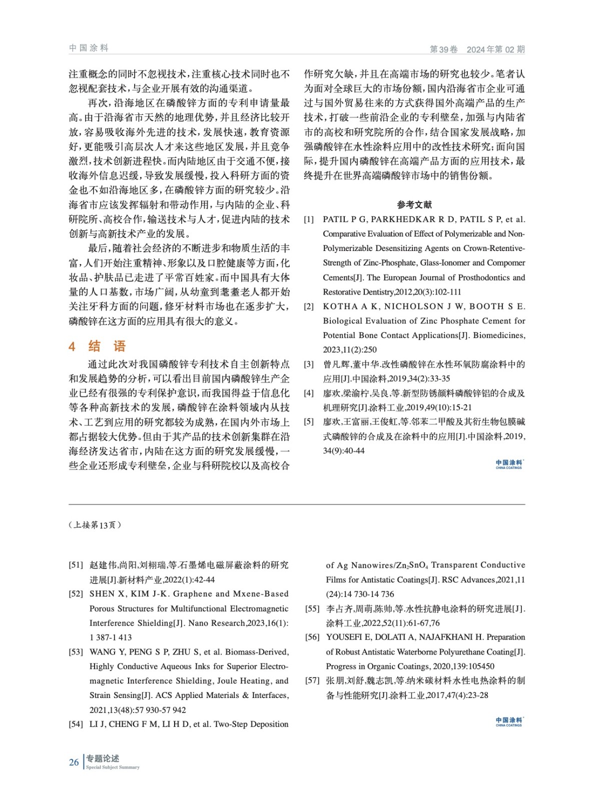 摘要:通過研究我國磷酸鋅申請專利保護的情況,對其自主創新和專利應用的特點進行了全面分析。分析表明,2011–2018年我國磷酸鋅專利申請量上升,2019–2022年開始下降,專利申請類型以發明專利為主,專利保護以磷酸鋅在涂料中的應用(其中主要是抗腐蝕涂料)為主。同時通過對磷酸鋅專利技術發展趨勢與競爭力預測的分析,以及對開發高端磷酸鋅產品的方式和現有專利的運營方式提出了建議。
