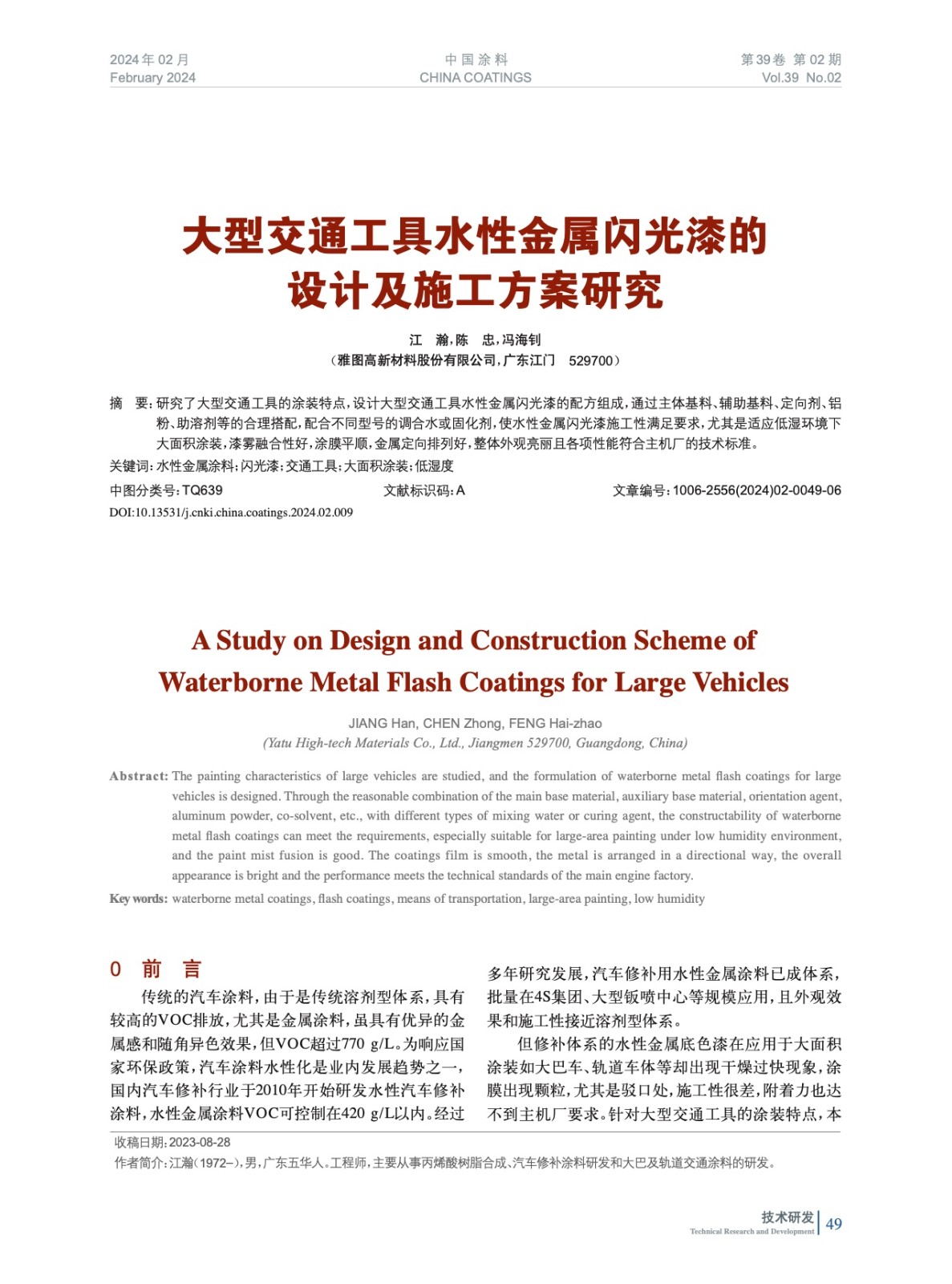 本文系作者@江 瀚,陳 忠,馮海釗 授權(quán)中國(guó)涂料網(wǎng)發(fā)表,并經(jīng)中國(guó)涂料網(wǎng)編輯,未經(jīng)允許不得轉(zhuǎn)載,如需轉(zhuǎn)載請(qǐng)聯(lián)系chinacoatingnet@vip.163.com