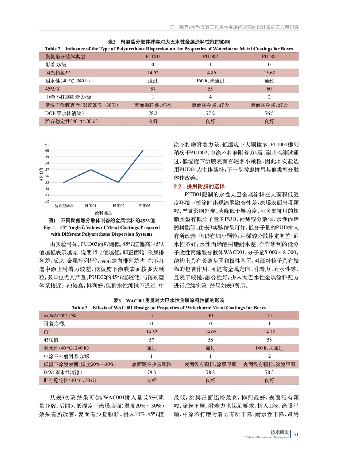 摘要:研究了大型交通工具的涂裝特點(diǎn),設(shè)計(jì)大型交通工具水性金屬閃光漆的配方組成,通過(guò)主體基料、輔助基料、定向劑、鋁粉、助溶劑等的合理搭配,配合不同型號(hào)的調(diào)合水或固化劑,使水性金屬閃光漆施工性滿足要求,尤其是適應(yīng)低濕環(huán)境下大面積涂裝,漆霧融合性好,涂膜平順,金屬定向排列好,整體外觀亮麗且各項(xiàng)性能符合主機(jī)廠的技術(shù)標(biāo)準(zhǔn)。