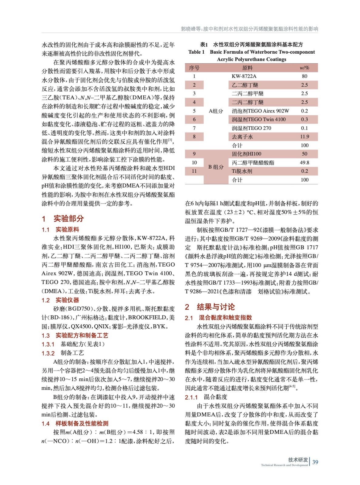研究了搭載不同用量胺中和劑的水性羥基丙烯酸涂料,混合異氰酸酯固化劑后,涂料黏度、觸變指數、pH值、光澤、耐水性和附著力隨時間變化的關系,為胺中和劑在水性丙烯酸聚氨酯涂料中的合理用量提供一定的參考價值。