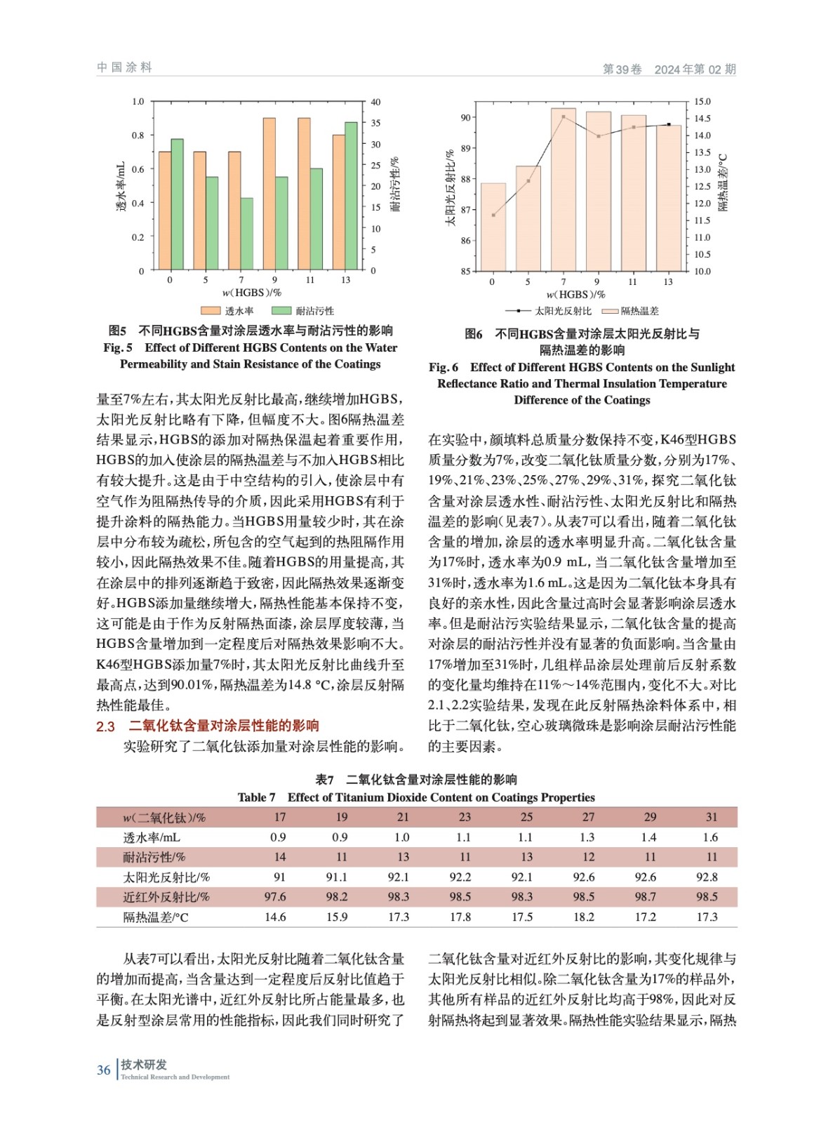 摘要:研究了反射隔熱涂料中重要組分對其性能的影響規律。以純丙乳膠作為成膜物,空心玻璃微珠和金紅石型二氧化鈦作為功能填料,在基本配方體系基礎上,通過單一變量控制法研究了空心玻璃微珠、金紅石型二氧化鈦的尺寸及添加量等因素對反射隔熱涂料透水及耐沾污性、太陽光反射性能和隔熱性能的影響規律,并制備得到綜合性能優異的水性反射隔熱涂料。研究結果表明,反射隔熱填料不僅影響涂層的太陽光反射和隔熱性能,對于涂層的耐水和耐沾污性也有顯著影響。