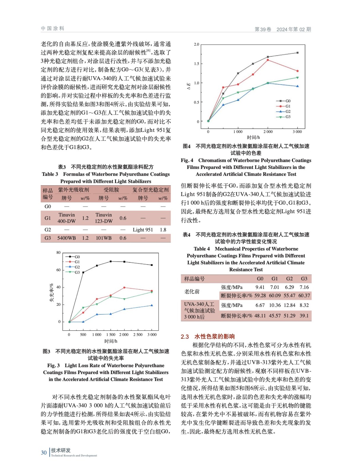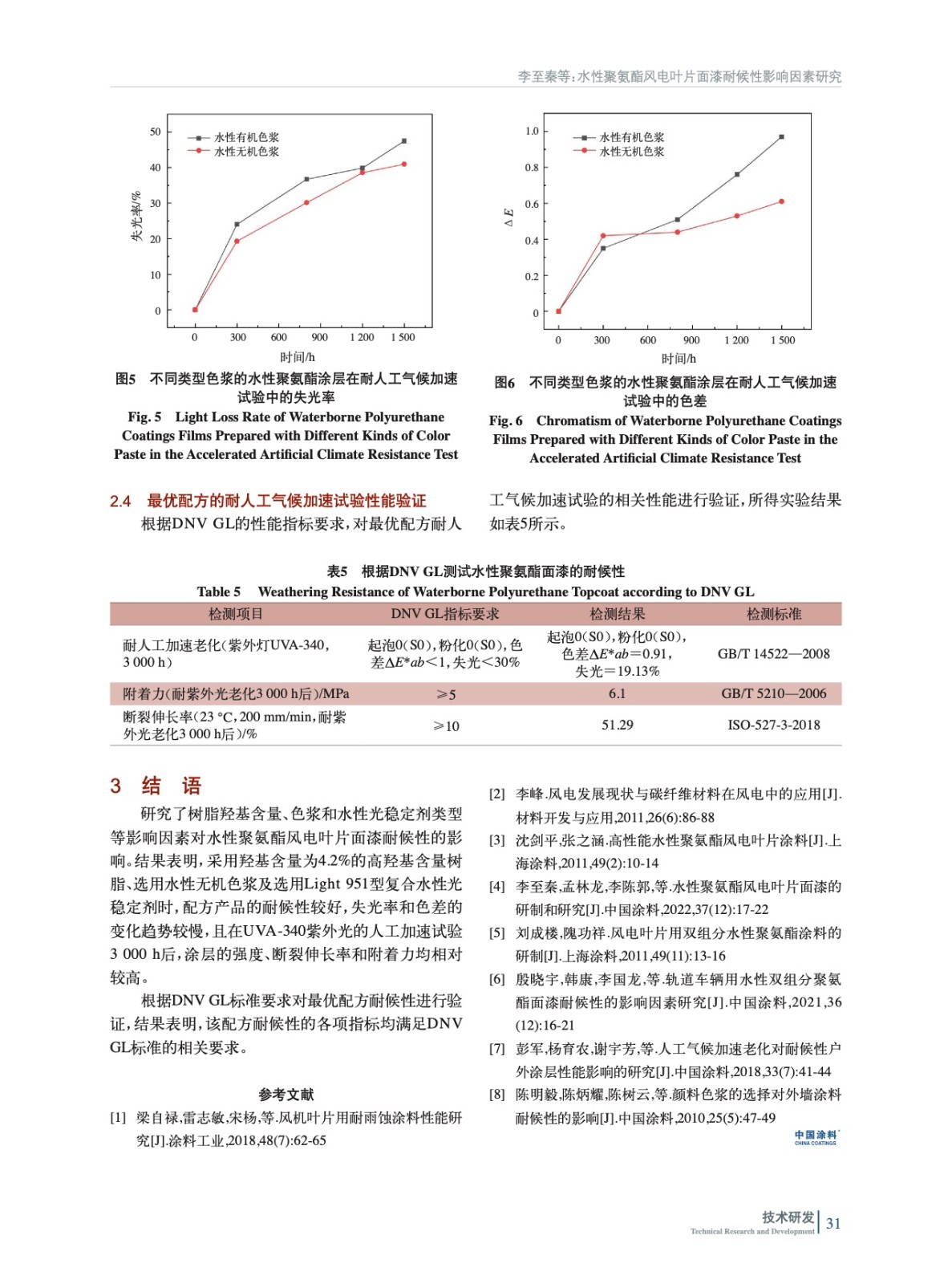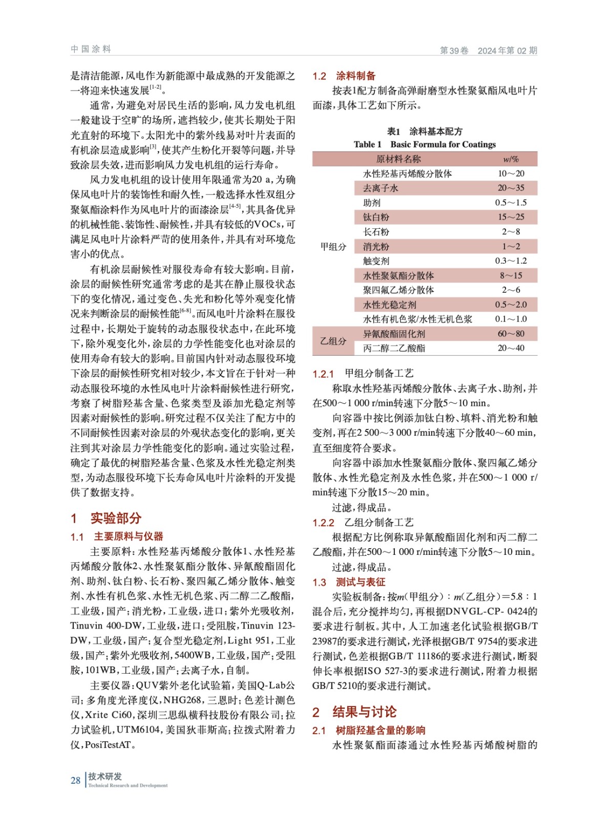水性聚氨酯風電葉片面漆耐候性影響因素研究