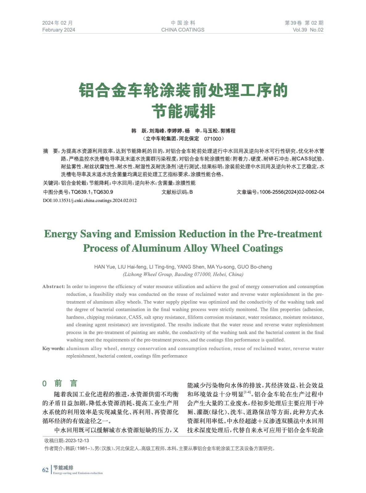 鋁合金車輪涂裝前處理工序的節(jié)能減排