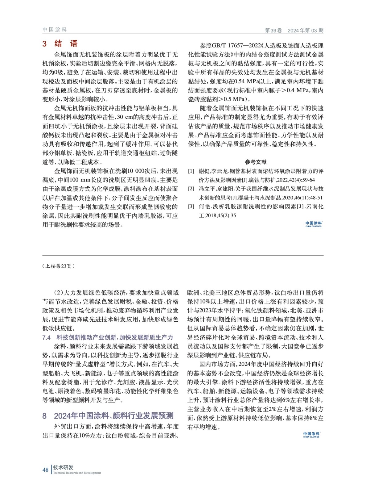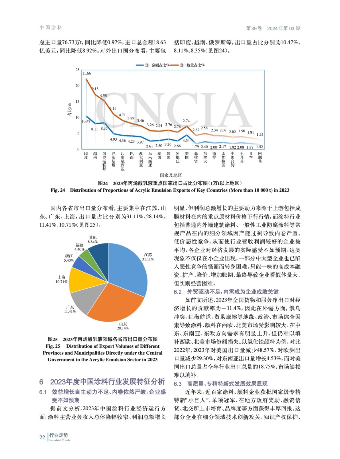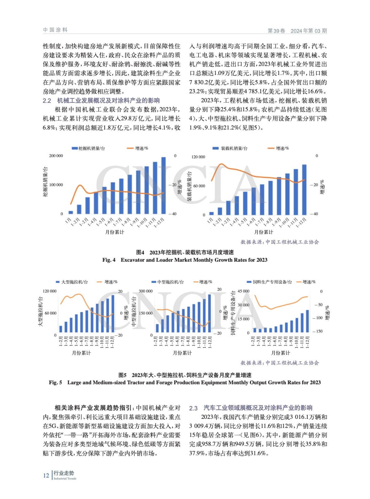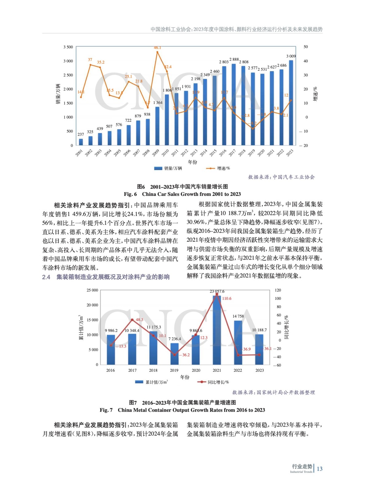 摘要:簡析了2023年中國宏觀經濟及外部環(huán)境發(fā)展情況,概括介紹了2023年涂料重點下游、新興領域發(fā)展概況及對涂料行業(yè)的影響,重點分析了2023年度中國涂料行業(yè)發(fā)展和進出口情況,并對上游鈦白粉、氧化鐵、丙烯酸乳液和環(huán)氧樹脂領域發(fā)展情況進行了概述。最后對中國涂料行業(yè)特征和發(fā)展趨勢進行了分析和預測。